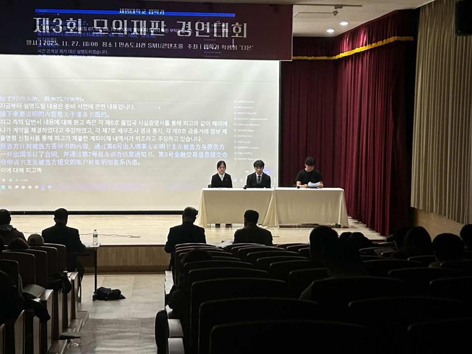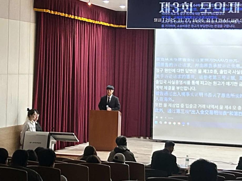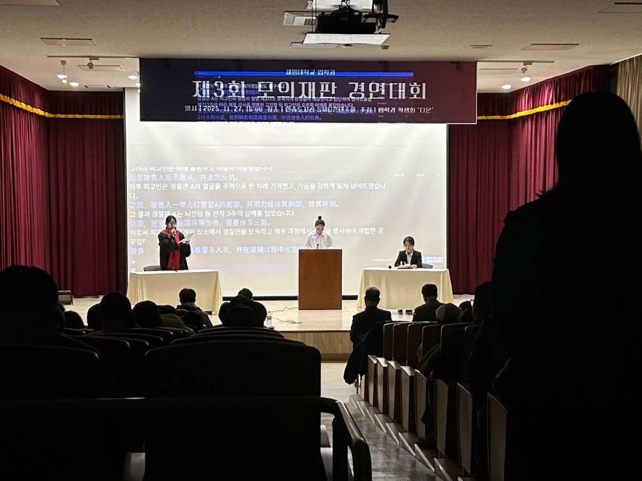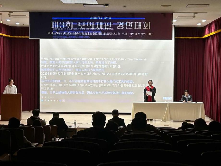 본문 시작 홈으로 커뮤니티 학과안내 교수소개 학과과정 커뮤니티 홈페이지가이드 학과사진첩 공지사항 취업정보 학과사진첩 학과행사 동아리 학생회 교우소식 학과사진첩 페이스북 트위터 프린트 2025학년도 제3회 법학과 모의재판 경연대회 법학과 1459 2025-12-03 2025년 11월 27일 민송도서관 1층 콘텐츠홀에서 법학과 모의재판 경연대회 진행하였습니다. 참여하신 모든 분들 고생 많으셨습니다. 목록 이전2025학년도 법학과 특강 다음 겨울방학 해외 배낭여행-대만 담당부서 : 법학과 담당자 : - 연락처 : 043-649-1764 최종수정일 : 2024-10-26 만족도조사 만족도 조사 이 페이지에서 제공하는 정보에 대하여 만족하시나요? 매우만족 만족 보통 불만족 매우불만족