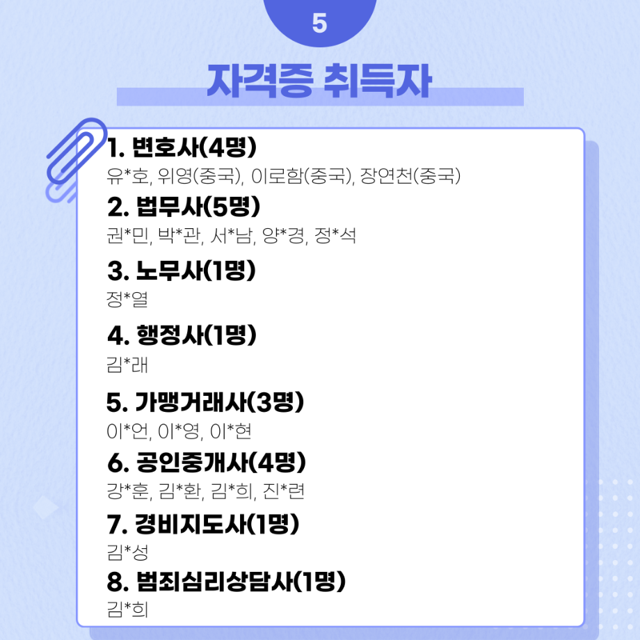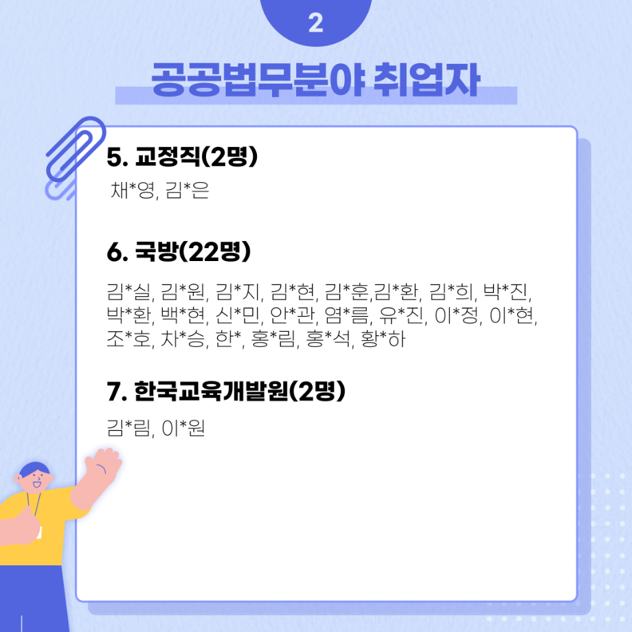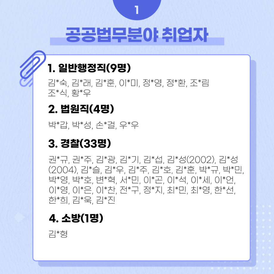 본문 시작 홈으로 커뮤니티 학과안내 교수소개 학과과정 커뮤니티 홈페이지가이드 학과사진첩 공지사항 취업정보 학과사진첩 학과행사 동아리 학생회 교우소식 학과사진첩 페이스북 트위터 프린트 법학과 선배들의 진로 현황 법학과 15238 2023-08-03 법학과 선배들의 진로 현황입니다. 목록 이전재학생 모교방문 입시홍보(세명고등학교) 다음 재학 중 공무원 합격을 축하합니다! 담당부서 : 법학과 담당자 : - 연락처 : 043-649-1764 최종수정일 : 2024-10-26 만족도조사 만족도 조사 이 페이지에서 제공하는 정보에 대하여 만족하시나요? 매우만족 만족 보통 불만족 매우불만족