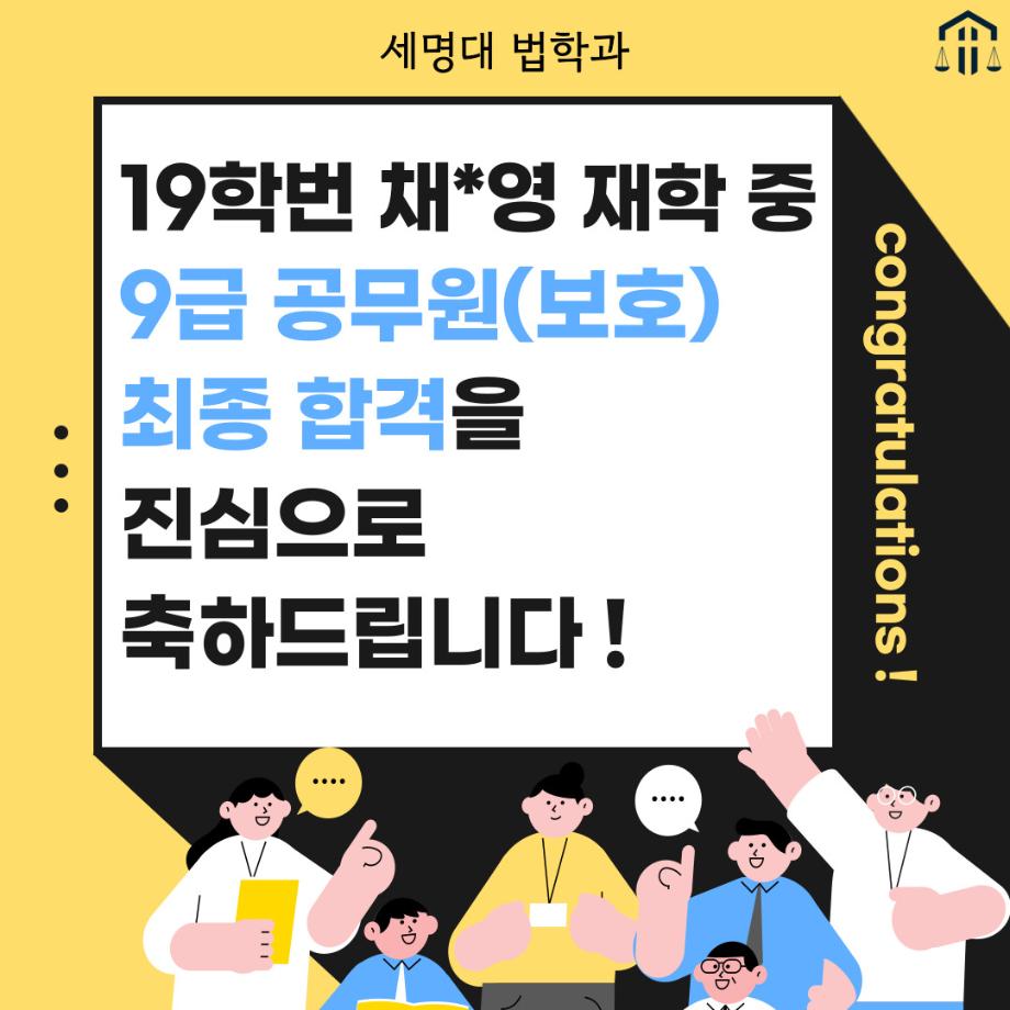 본문 시작 홈으로 커뮤니티 학과안내 교수소개 학과과정 커뮤니티 홈페이지가이드 학과사진첩 공지사항 취업정보 학과사진첩 학과행사 동아리 학생회 교우소식 학과사진첩 페이스북 트위터 프린트 재학 중 공무원 합격을 축하합니다! 법학과 8446 2023-09-04 법학과 재학생인 19학번 채*영 학우가 재학 중 9급 공무원(보호직)에 합격하였습니다!! 다시 한 번 진심으로 축하드립니다! 목록 이전법학과 선배들의 진로 현황 다음 웹드라마 '무빙' 촬영지 세명대학교 학술관에서 찰칵! 담당부서 : 법학과 담당자 : - 연락처 : 043-649-1764 최종수정일 : 2024-10-26 만족도조사 만족도 조사 이 페이지에서 제공하는 정보에 대하여 만족하시나요? 매우만족 만족 보통 불만족 매우불만족