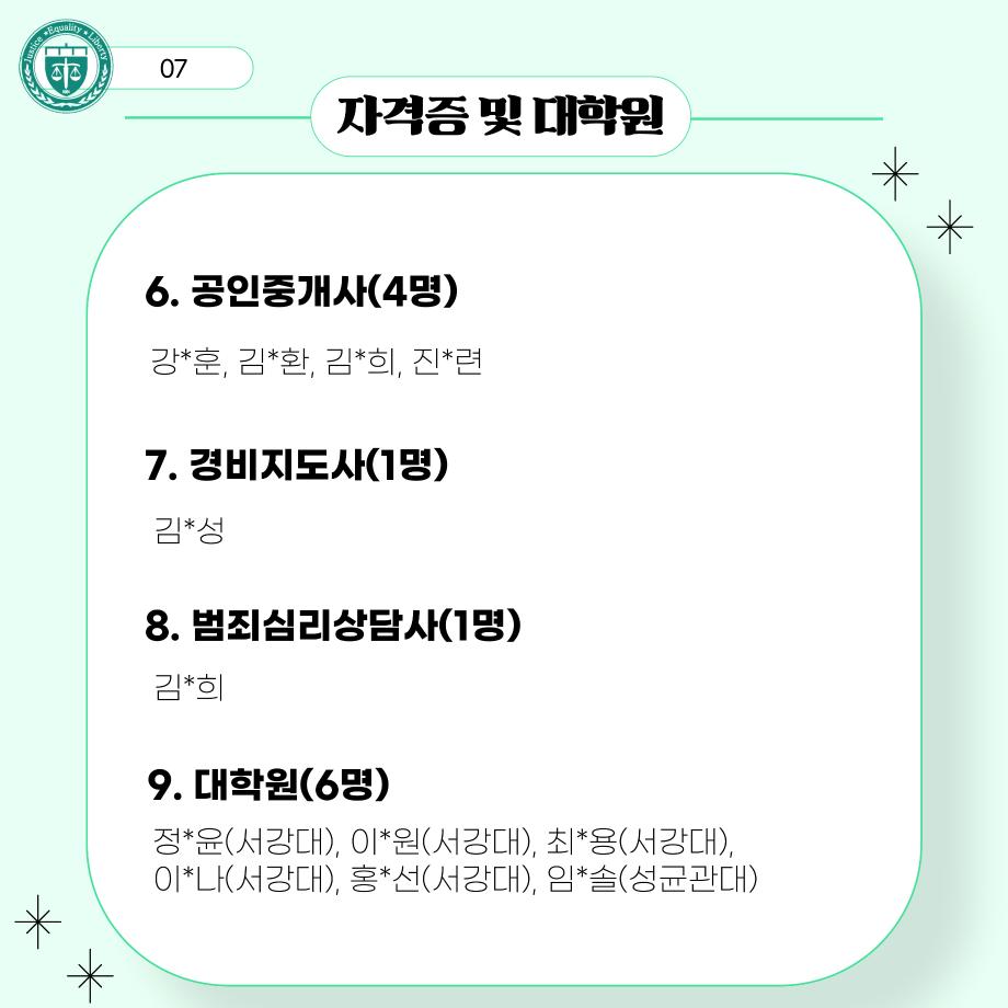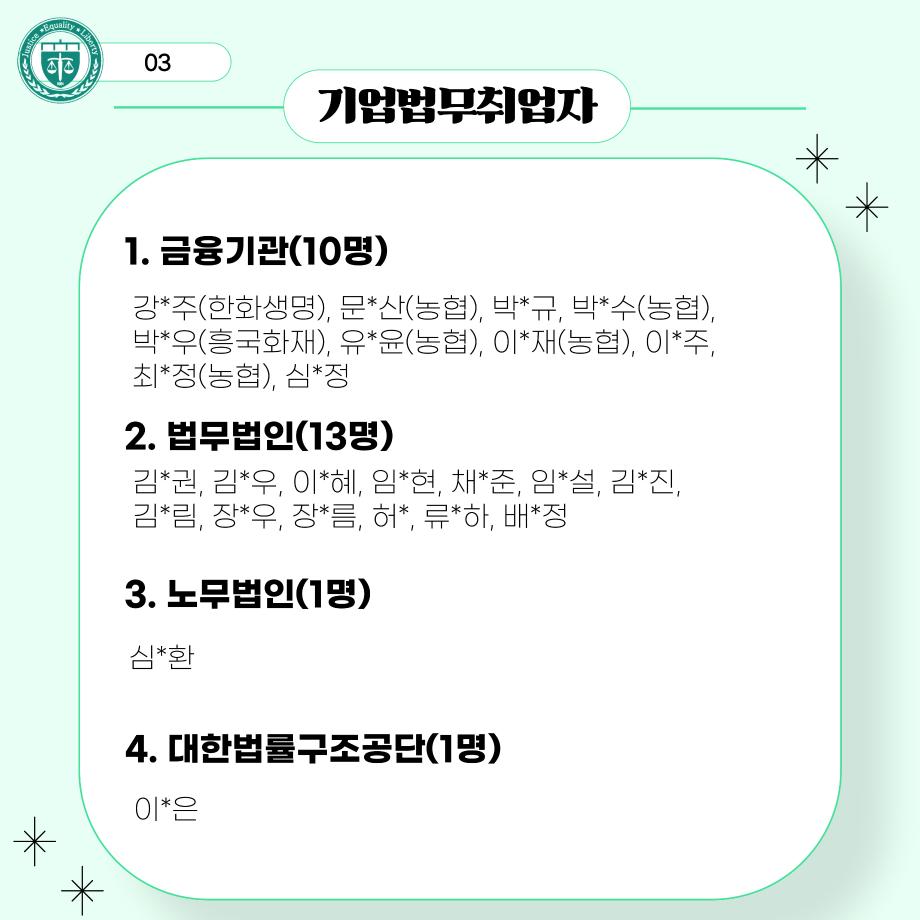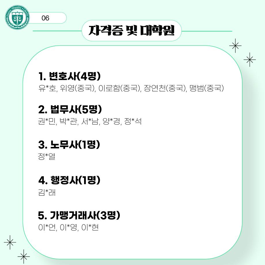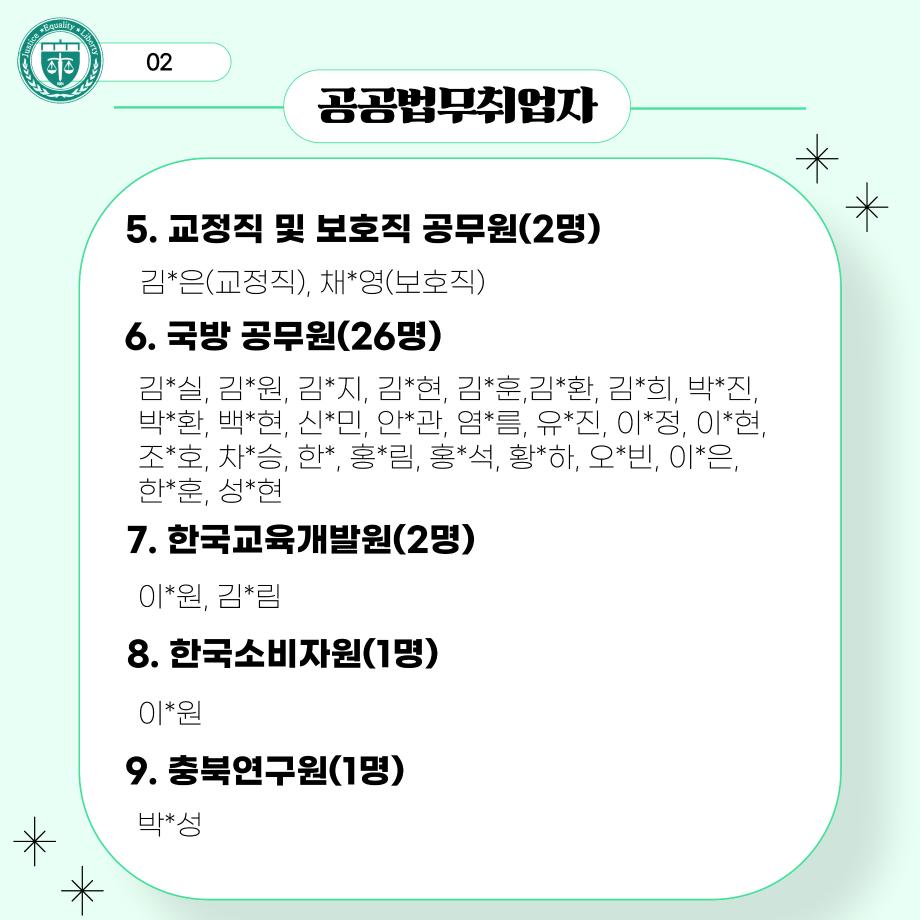 본문 시작 홈으로 커뮤니티 학과안내 교수소개 학과과정 커뮤니티 홈페이지가이드 학과사진첩 공지사항 취업정보 학과사진첩 학과행사 동아리 학생회 교우소식 학과사진첩 페이스북 트위터 프린트 법학과 선배들의 진로 현황 법학과 2531 2025-06-18 법학과 선배들의 진로 현황입니다. 목록 이전법학과 간식 이벤트🍪 다음 [2025 입시홍보활동] 서울 학원 입시 홍보 방문 담당부서 : 법학과 담당자 : - 연락처 : 043-649-1764 최종수정일 : 2024-10-26 만족도조사 만족도 조사 이 페이지에서 제공하는 정보에 대하여 만족하시나요? 매우만족 만족 보통 불만족 매우불만족
