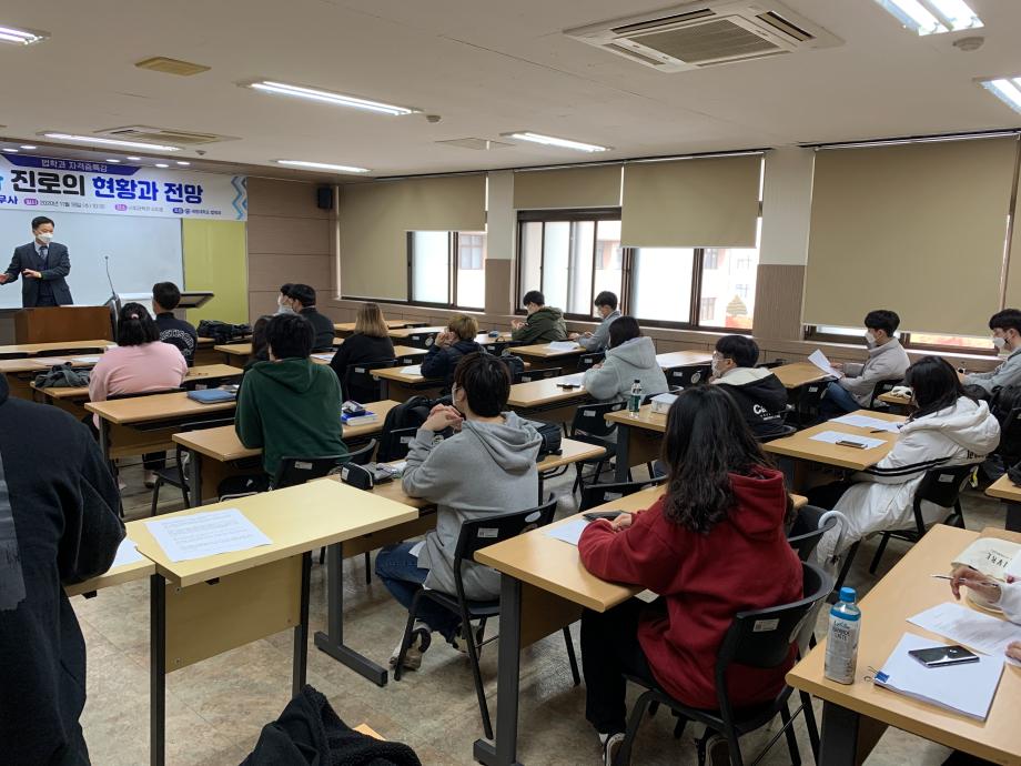 본문 시작 홈으로 커뮤니티 학과안내 교수소개 학과과정 커뮤니티 홈페이지가이드 학과사진첩 공지사항 취업정보 학과사진첩 학과행사 동아리 학생회 교우소식 학과사진첩 페이스북 트위터 프린트 2020.11.18 법무사님 특강 법학과 7959 2020-11-18 2020년 11월 18일 정찬석 법무사님을 모시고 ' 법학 전공자의 진로, 연관 자격증(법무사 등)과 수험공부 방법 및 장래성' 이라는 주제로 특강을 진행하였습니다. 목록 이전2020-06-10 법학과 캠퍼스 투어 다음 2020.11.19 공인노무사 특강 담당부서 : 법학과 담당자 : - 연락처 : 043-649-1764 최종수정일 : 2024-10-26 만족도조사 만족도 조사 이 페이지에서 제공하는 정보에 대하여 만족하시나요? 매우만족 만족 보통 불만족 매우불만족
