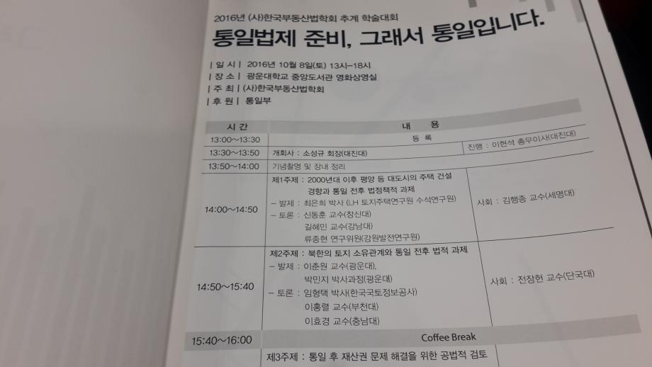 본문 시작 홈으로 학과 소식 학과소개 취업 및 진로 언론 및 보도 학과 소식 대학원 홈페이지가이드 행사사진게시판 행사사진게시판 공지사항 일반자료실 강의자료실 부동산학보 동아리 행사사진게시판 페이스북 트위터 프린트 2016년 (사)한국부동산법학회 추계 학술대회 참가 전체관리자 8714 2016-10-09 2016년 (사)한국부동산법학회 추계 학술대회 참가 일시: 2016.10.8(토) 13:00 -18:00 장소: 광운대학교 중앙도서관 영화상영실 주최: (사)한국부동산법학회 후원: 통일부 주제: 통일법제 준비, 그래서 통일입니다. 참가자: 김행종 교수 제1주제 사회자 목록 다음 제14회 한중일 거주문제 국제회의 현장답사 이전2016학년도 2학기 책임지도교수제 행사 개최 담당부서 : 부동산지적학과 담당자 : - 연락처 : 043-649-1784 최종수정일 : 2024-10-26 만족도조사 만족도 조사 이 페이지에서 제공하는 정보에 대하여 만족하시나요? 매우만족 만족 보통 불만족 매우불만족