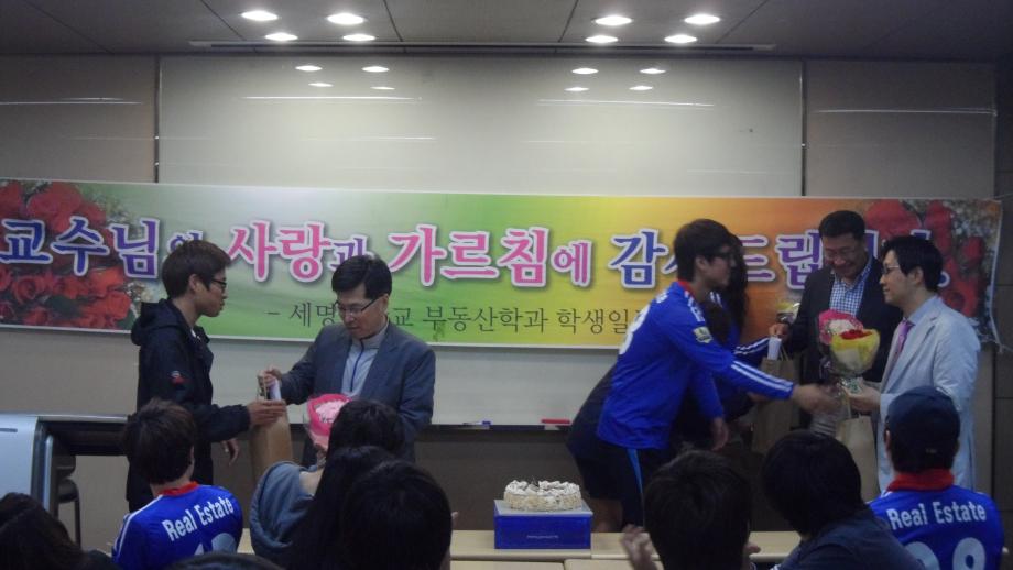 본문 시작 홈으로 학과 소식 학과소개 취업 및 진로 언론 및 보도 학과 소식 대학원 홈페이지가이드 행사사진게시판 행사사진게시판 공지사항 일반자료실 강의자료실 부동산학보 동아리 행사사진게시판 페이스북 트위터 프린트 부동산학과 스승의날 행사 전체관리자 7446 2012-05-21 2012년 5월 17일(목) 저녁4시부터 "스승의 날 행사"를 사회과학관 122호,123호에서 개최하였다. 이날 학과 교수님(김행종, 권기욱, 김상진, 백민석 교수님)과 조교 선생님, 재학생 전원이 참석한 가운데, "스승의 은혜" 와 정성스레 준비한 꽃다발, 교수님께 드리는 글, 선물 증정식, 케익자르기, 감사의 축배(세부주), 치킨, 피자 등 뜻있고 의미있는 감사의 시간을 가졌다. ♥ 교수님!!! 사랑합니다.!!! 목록 이전지역개발은 이렇게!!! 이전우리사회의 문제? 담당부서 : 부동산지적학과 담당자 : - 연락처 : 043-649-1784 최종수정일 : 2024-10-26 만족도조사 만족도 조사 이 페이지에서 제공하는 정보에 대하여 만족하시나요? 매우만족 만족 보통 불만족 매우불만족