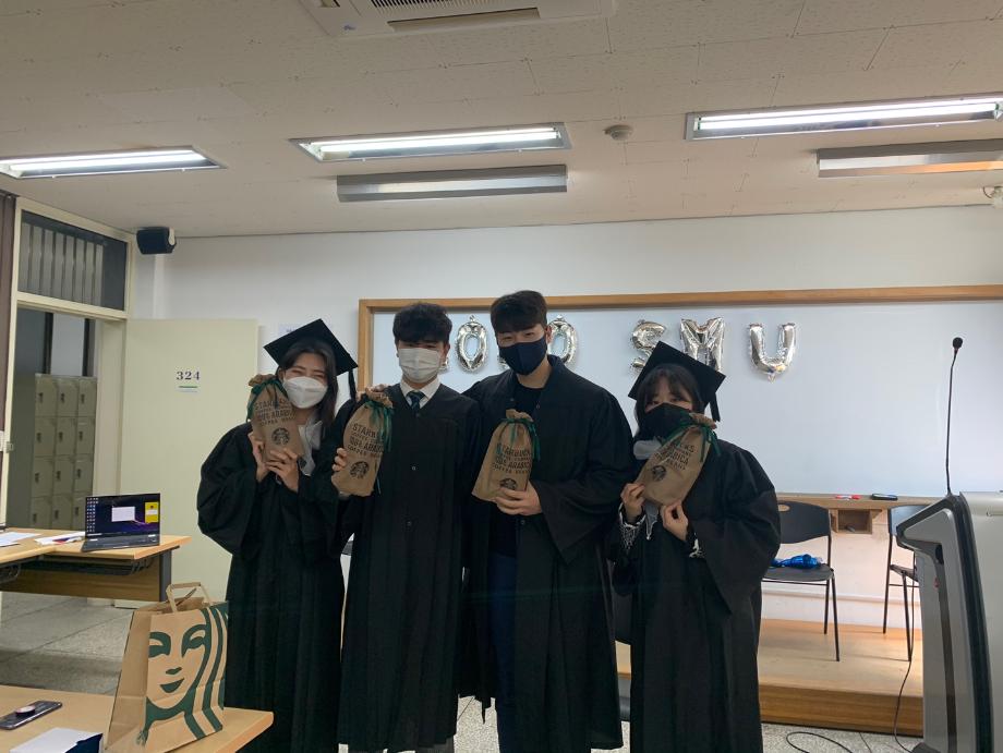 부동산학과에서 2020학년도 전기 졸업식을 ZOOM을 활용한 실시간 비대면으로 진행 하였습니다. 외부 표창 수상자 4인은 대면으로 졸업식에 참여 하였습니다. 코로나로 인하여 졸업식이 전면 취소되고 있는 상황입니다. 졸업생들의 아쉬움이 크다고 생각되어 비대면 졸업식을 실시 하게 되었습니다. 학생들의 졸업을 진심으로 축하합니다.