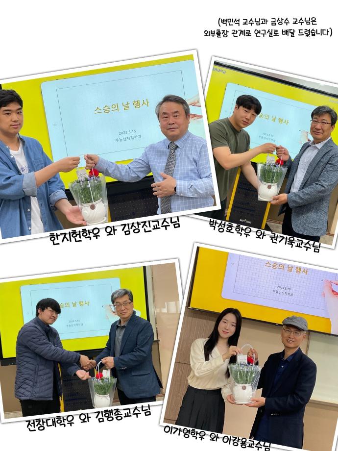 본문 시작 홈으로 학과 소식 학과소개 취업 및 진로 언론 및 보도 학과 소식 대학원 홈페이지가이드 행사사진게시판 행사사진게시판 공지사항 일반자료실 강의자료실 부동산학보 동아리 행사사진게시판 페이스북 트위터 프린트 2023학년도 스승의 날 행사 도시경제부동산학과 3895 2023-05-15 ■ 행사 2023학년도 스승의 날 ■ 일시 2023.05.15 10:30 ■ 참여 김상진교수님, 김행종교수님, 권기욱교수님, 이강용교수님, 도시경제부동산학과 재학생 5월 15일 스승의날을 맞아 재학생 및 학생회임원진이 감사한 마음을 담은 선물을 전달하였습니다. 항상 학생들을 우선적으로 생각해주시고 움직여주시는 교수님들이 있어 행복하고 감사합니다! 작성자 : 도시경제부동산학과 조교 목록 이전2023학년도 도시경제부동산학과 봉사활동 다음 2023학년도 성년의날 행사 담당부서 : 부동산지적학과 담당자 : - 연락처 : 043-649-1784 최종수정일 : 2024-10-26 만족도조사 만족도 조사 이 페이지에서 제공하는 정보에 대하여 만족하시나요? 매우만족 만족 보통 불만족 매우불만족