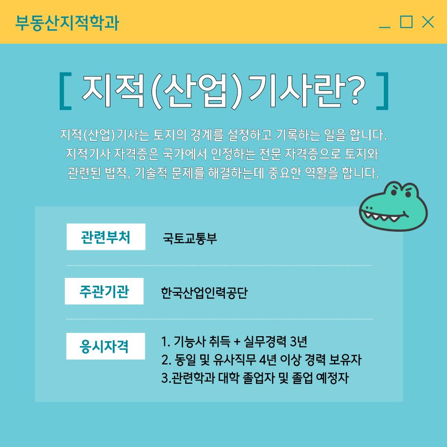 본문 시작 홈으로 학과 소식 학과소개 취업 및 진로 언론 및 보도 학과 소식 대학원 홈페이지가이드 행사사진게시판 행사사진게시판 공지사항 일반자료실 강의자료실 부동산학보 동아리 행사사진게시판 페이스북 트위터 프린트 지적기사 소개 카드 부동산지적학과 2435 2024-11-26 지적기사 소개 카드입니다. 지적기사에 관심있는 학생들은 참고하여 주세요. 목록 이전공인중개사 소개카드 이전청소년 빅 콘서트_ 학과 전공체험 담당부서 : 부동산지적학과 담당자 : - 연락처 : 043-649-1784 최종수정일 : 2024-10-26 만족도조사 만족도 조사 이 페이지에서 제공하는 정보에 대하여 만족하시나요? 매우만족 만족 보통 불만족 매우불만족
