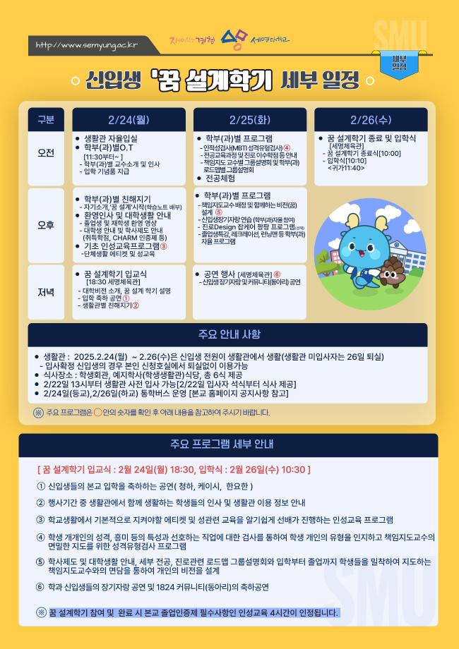 본문 시작 홈으로 학과 소식 학과소개 취업 및 진로 언론 및 보도 학과 소식 대학원 홈페이지가이드 행사사진게시판 행사사진게시판 공지사항 일반자료실 강의자료실 부동산학보 동아리 행사사진게시판 페이스북 트위터 프린트 2025학년도 꿈 설계학기 안내문 부동산지적학과 2320 2025-02-07 안녕하십니까 2025학년도 꿈 설계학기가 2월24일부터 2월 26일까지 진행됩니다. 학교와 학과,진로에 대한 설명이 진행되는 시간인 만큼 많은 관심과 참여 부탁드립니다. 문의:043-649-1784 작성자: 부동산지적학과 조교 목록 이전2024학년도 현장실습 방문지도 - (주)에스에이치프라퍼티 다음 2024학년도 부동산학과 전기 졸업식 담당부서 : 부동산지적학과 담당자 : - 연락처 : 043-649-1784 최종수정일 : 2024-10-26 만족도조사 만족도 조사 이 페이지에서 제공하는 정보에 대하여 만족하시나요? 매우만족 만족 보통 불만족 매우불만족