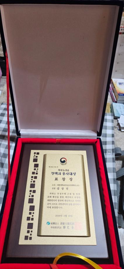 부동산지적학과 김상진 교수 국민권익위원회 수여 청백리 봉사대상 표창장 수상