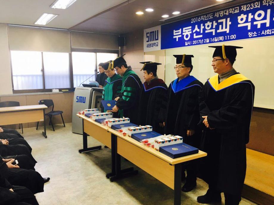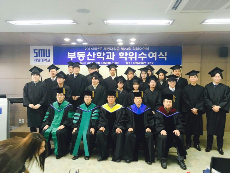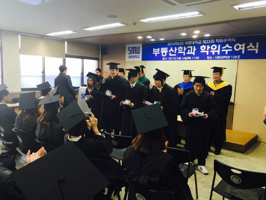본문 시작 홈으로 학과 소식 학과소개 취업 및 진로 언론 및 보도 학과 소식 대학원 홈페이지가이드 행사사진게시판 행사사진게시판 공지사항 일반자료실 강의자료실 부동산학보 동아리 행사사진게시판 페이스북 트위터 프린트 2017년 학위수여식 전체관리자 8454 2017-04-14 2017 부동산학과 학위수여식 일시: 2017.02.16 목요일 10 :00 시 장소 : 사회과학관 128호 세명대 부동산학과 제7회 학위수여식을 마쳤습니다. 총 25명의 학생이 졸업을 하였으며, 부동산관련 직종 및 공간정보산업분야, 대학원 진학 등 을 하였습니다. 졸업생 여러분 모두 축하드립니다!! 목록 이전2017꿈설계학기 1일차 이전2017학년도 1학기 책임지도교수제 행사 개최 담당부서 : 부동산지적학과 담당자 : - 연락처 : 043-649-1784 최종수정일 : 2024-10-26 만족도조사 만족도 조사 이 페이지에서 제공하는 정보에 대하여 만족하시나요? 매우만족 만족 보통 불만족 매우불만족