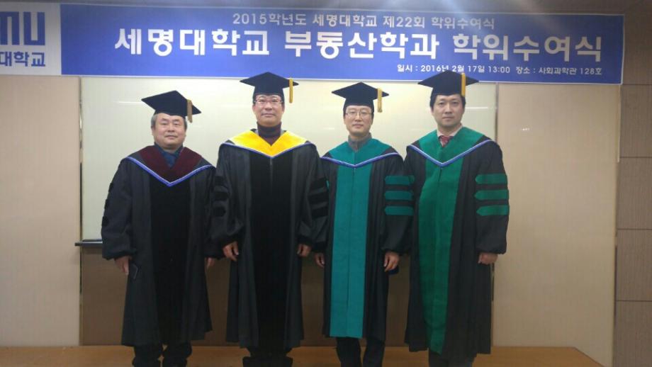 본문 시작 홈으로 학과 소식 학과소개 취업 및 진로 언론 및 보도 학과 소식 대학원 홈페이지가이드 행사사진게시판 행사사진게시판 공지사항 일반자료실 강의자료실 부동산학보 동아리 행사사진게시판 페이스북 트위터 프린트 2016 부동산학과 학위수여식 전체관리자 8829 2016-02-18 2016 부동산학과 학위수여식 일시 : 2016.02.17 수 장소 : 사회과학관 128호 13 : 00 세명대 부동산학과 제7회 학위수여식을 마쳤습니다. 총32명의 학생이 졸업을 하였으며, 부동산관련 직종 및 공간정보산업분야, 대학원 진학 등 72%의 취업을 하였습니다. 졸업생 여러분 모두 축하드립니다. 앞으로의 건승을 기원하겠습니다. 목록 다음 일본 도시재생 선진사례 벤치마킹 프로그램 참가 이전축!!! 김행종 교수님 국기원장 표창장 수상 담당부서 : 부동산지적학과 담당자 : - 연락처 : 043-649-1784 최종수정일 : 2024-10-26 만족도조사 만족도 조사 이 페이지에서 제공하는 정보에 대하여 만족하시나요? 매우만족 만족 보통 불만족 매우불만족