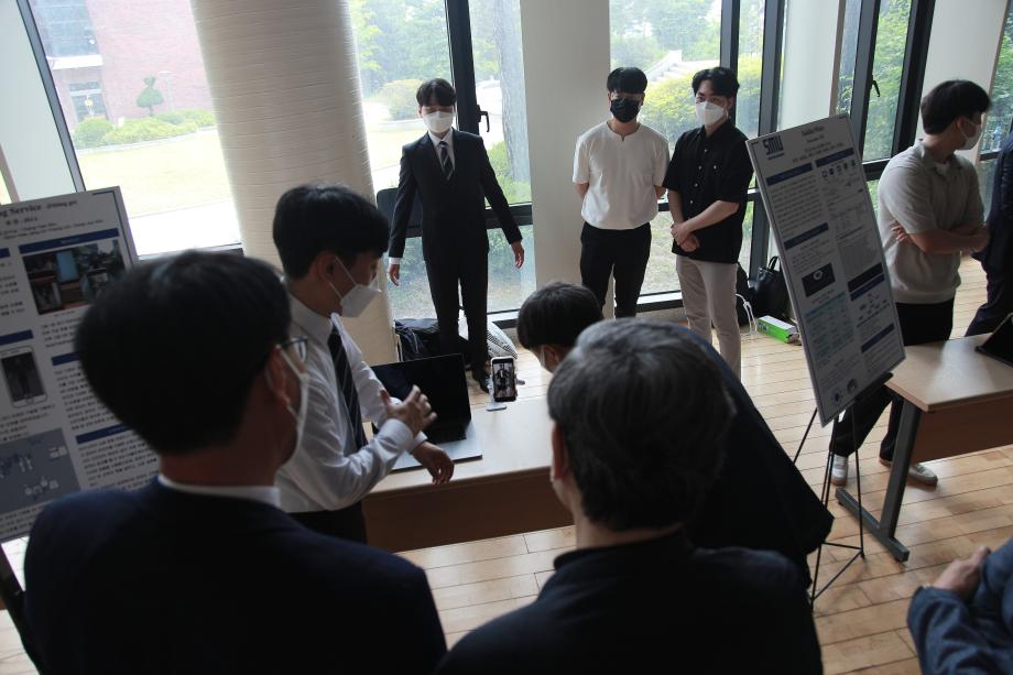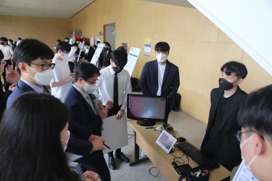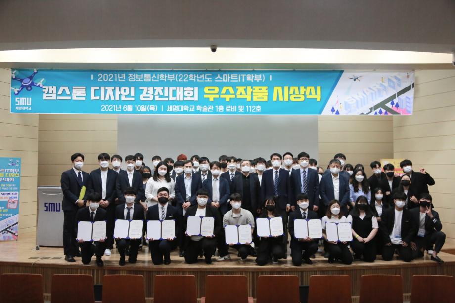본문 시작 홈으로 SMIT 소식 SMIT 소개 SMIT 교육 SMIT 취업 SMIT 소식 SMIT 입학 홈페이지가이드 갤러리 공지사항 갤러리 경진대회 동아리 갤러리 페이스북 트위터 프린트 2021학년도 스마트IT학부 캡스톤디자인 경진대회 정보통신학부 3818 2021-06-10 2021년 06월 10일 정보통신학부에서는 캡스톤디자인 경진대회를 학술관1층 로비에서 진행하였습니다. 4학년 재학생들이 4년동안 학습한 지식의 미무리 단계로서 1년 동안 준비한 작품을 교수님들께 설명과 함께 시연하고 교수님들의 평가 후 우수작품을 선정하여 학술관112호에서 시상하였다. 캡스톤디자인 결과발표회를 통해서 재학생들은 산업현장에서 진행해야 하는 프로젝트 업무를 간접적으로 느낄 수 있는 뜻 깊은 자리 였습니다. 목록 이전스마트IT학부 홍보팀 “스마트하랑”발대식 다음 2022학년도 스마트IT학부 리플렛 담당부서 : 스마트IT학부 담당자 : - 연락처 : 043-649-1275 최종수정일 : 2024-10-26 만족도조사 만족도 조사 이 페이지에서 제공하는 정보에 대하여 만족하시나요? 매우만족 만족 보통 불만족 매우불만족