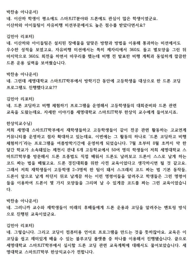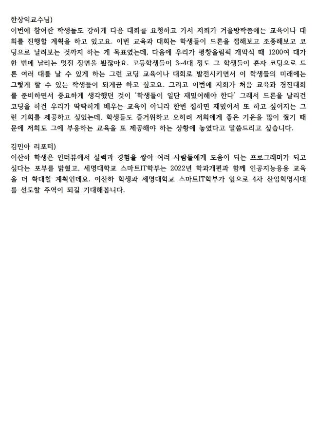 본문 시작 홈으로 SMIT 소식 SMIT 소개 SMIT 교육 SMIT 취업 SMIT 소식 SMIT 입학 홈페이지가이드 갤러리 공지사항 갤러리 경진대회 동아리 갤러리 페이스북 트위터 프린트 21.08.30(월) SM 스마트 드론 레이싱 경진대회 관련 라디오 출연 스마트IT학부 3030 2021-09-23 지난 8월19일(목)에 진행한 "SM 스마트 드론 레이싱 경진대회"와 관련하여 최우수상을 수상한 충주상업고 학생과 스마트IT학부 한상익교수님이 출연하여 수상소감대회 및 준비과정과 진행 방식등을 설명하였다. 목록 이전2021. SM 스마트 드론 레이싱 경진대회 기사 다음 2021.09.03(금) 스마트IT학부 한상익교수님 라디오 출연 담당부서 : 스마트IT학부 담당자 : - 연락처 : 043-649-1275 최종수정일 : 2024-10-26 만족도조사 만족도 조사 이 페이지에서 제공하는 정보에 대하여 만족하시나요? 매우만족 만족 보통 불만족 매우불만족