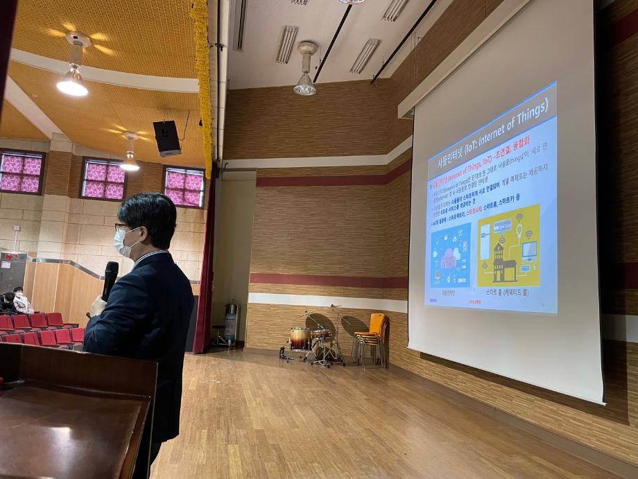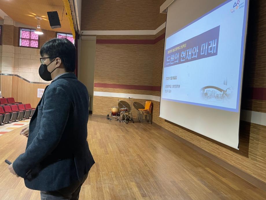 본문 시작 홈으로 SMIT 소식 SMIT 소개 SMIT 교육 SMIT 취업 SMIT 소식 SMIT 입학 홈페이지가이드 갤러리 공지사항 갤러리 경진대회 동아리 갤러리 페이스북 트위터 프린트 스마트IT학부 원주 대성고등학교 특강시행 스마트IT학부 3855 2022-12-09 2022년 12월 9일(금)에 원주 대성고등학교에서 3학년 학생 200여명을 대상으로 특강이 시행되었다. 스마트IT학부 조면균 교수님의 '생활속의 정보통신'과 한상익 교수님의 '드론의 현재와 미래'라는 주제로 이루어졌으며, 스마트IT학부의 전공과 관련된 내용이 소개되었다. 스마트IT학부 소개와 함께 정보통신, 드론, 인공지능에 대한 지식을 재미있게 풀어주면서 수능으로 지친 3학년 학생들과 유익한 시간을 보내는 계기가되었다. 목록 이전오선진 교수님 퇴임식 다음 스마트IT학부 2022학년도 2학기 전공학습동아리 수료 담당부서 : 스마트IT학부 담당자 : - 연락처 : 043-649-1275 최종수정일 : 2024-10-26 만족도조사 만족도 조사 이 페이지에서 제공하는 정보에 대하여 만족하시나요? 매우만족 만족 보통 불만족 매우불만족