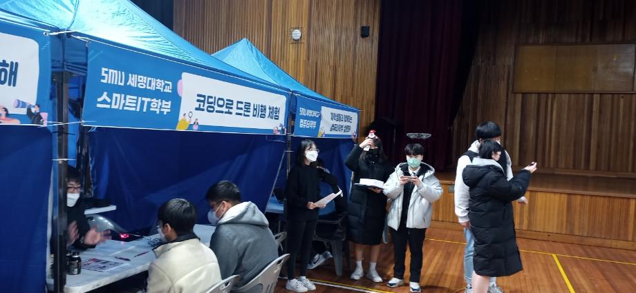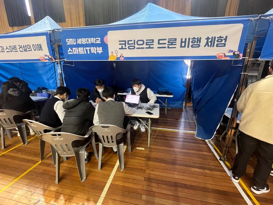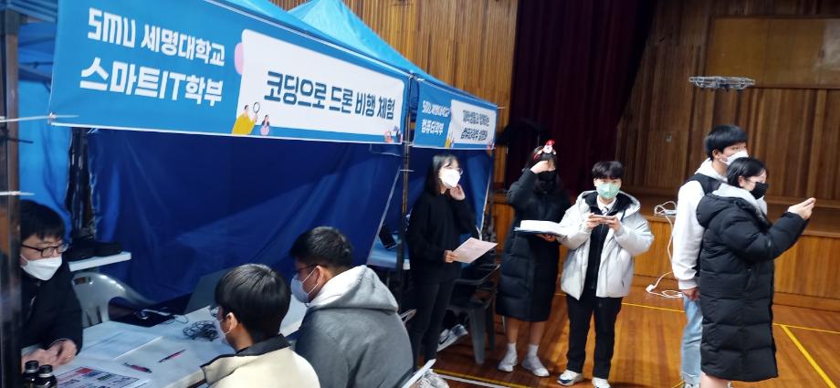 본문 시작 홈으로 SMIT 소식 SMIT 소개 SMIT 교육 SMIT 취업 SMIT 소식 SMIT 입학 홈페이지가이드 갤러리 공지사항 갤러리 경진대회 동아리 갤러리 페이스북 트위터 프린트 스마트IT학부 단양고 중등교육 연계프로그램 시행 스마트IT학부 3964 2022-12-22 스마트IT학부는 2022.12.22(목)에 단양고등학교 전공체험에 참가하였다. 한상익 교수님 주관으로 진행 되었으며, 스마트IT학부 재학생들이 보조 학생으로 참가하였다. 전공체험은 '코딩으로 드론 비행 체험'이라는 주제로 진행되었다. 단양고등학교 학생들에게 드론 조종법을 교육하고, 드론 비행 체험을 진행하게 하였다. 또한 스마트IT학부의 드론,자율주행차와 인공지능응용 전공에 대하여 소개하였다. 목록 이전스마트IT학부 2022학년도 2학기 전공학습동아리 수료 다음 스마트IT학부 정보처리기사 자격증 특강 시행 담당부서 : 스마트IT학부 담당자 : - 연락처 : 043-649-1275 최종수정일 : 2024-10-26 만족도조사 만족도 조사 이 페이지에서 제공하는 정보에 대하여 만족하시나요? 매우만족 만족 보통 불만족 매우불만족