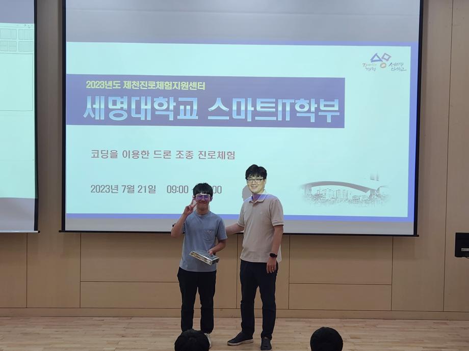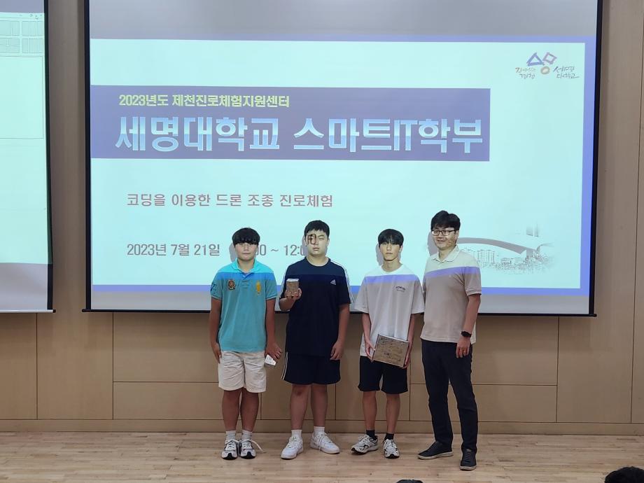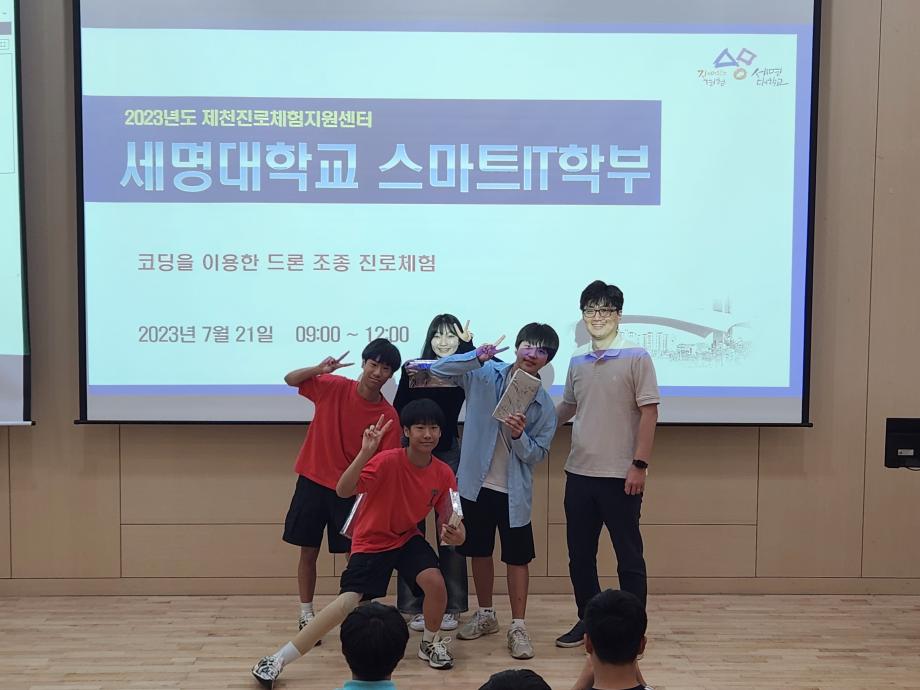 2023년 7월 20일(목) ~ 21(금) 이틀 간 오전 9시부터 오후 12까지 두 차례에 걸쳐 제천 진로체험지원센터 심화 프로그램인 "코딩을 이용한 드론 조종" 프로그램이 제천 관내 중,고등학생 22명을 대상으로 실시되었습니다. 이 프로그램은 세명대학교 학술관 1층 로비와 102호에서 진행되었으며, 스마트IT학부 한상익 교수님의 지도와 학부 학생들의 보조로 이루어졌습니다.