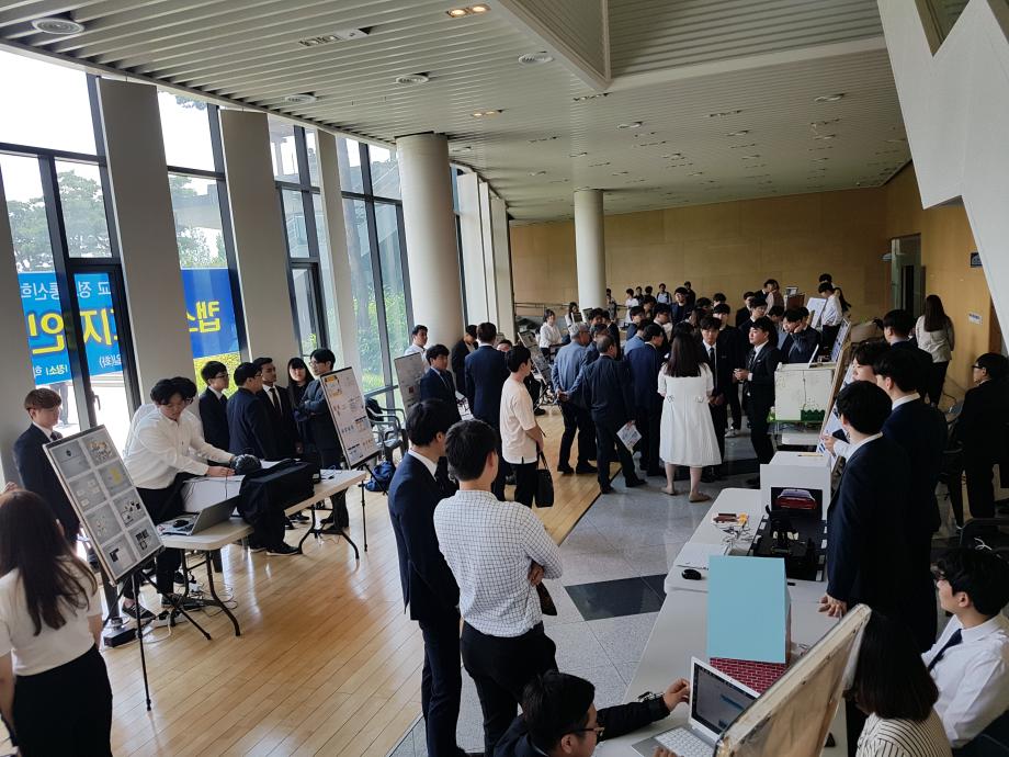 본문 시작 홈으로 SMIT 소식 SMIT 소개 SMIT 교육 SMIT 취업 SMIT 소식 SMIT 입학 홈페이지가이드 갤러리 공지사항 갤러리 경진대회 동아리 갤러리 페이스북 트위터 프린트 2018학년도 캡스톤디자인경진대회 정보통신학부 8583 2018-06-07 2018년 06월 05일 교내 학술관 1층로비 및 112호 세미나실에서 정보통신학부 캡스톤디자인경진대회가 진행되었습니다. 4학년 재학생들이 4년동안 학습한 지식의 미무리 단계로서 IT제품을 만들고 발표하여 졸업 후 산업현장에서 진행해야 하는 프로젝트 업무를 간접적으로 느낄 수 있는 뜻 깊은 자리 였습니다. 작품발표를 보며 1, 2, 3학년 재학생들은 기술을 습득하고 교류할 수 있는 좋은 기회였습니다. 목록 이전2018학년도 정보통신학부 동문체육대회 다음 LINC+ IoT융합시스템학과, 한국통신학회 학술논문상 수상! 담당부서 : 스마트IT학부 담당자 : - 연락처 : 043-649-1275 최종수정일 : 2024-10-26 만족도조사 만족도 조사 이 페이지에서 제공하는 정보에 대하여 만족하시나요? 매우만족 만족 보통 불만족 매우불만족