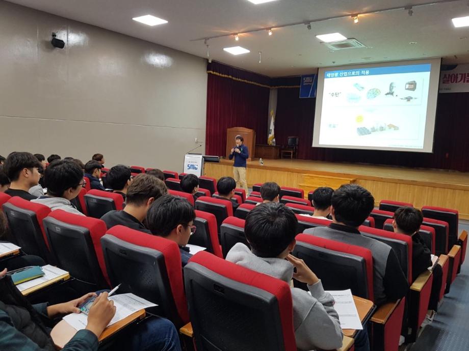 정보통신학부에서는 2018학년도 IT엔지니어링대학 졸업생 취업특강으로 10월 24일(수) (주)에너지코드 대표이사를 모시고 4차 산업시대의 취업준비 및 취업전략에 관한 특강을 진행하였다. 특강은 민송도서관 시청각실(107호)에서 진행되었으며 '4차 산업혁명시대의 융합형 인재로 성장하고 살아가는 법'을 주제로 진행되었다. 이 특강을 통해 재학생들은 취업준비에 필요한 견문을 넓힐 수 있었고 전문지식 및 현장실무능력의 중요성을 깨달을 수 있게 되었다.