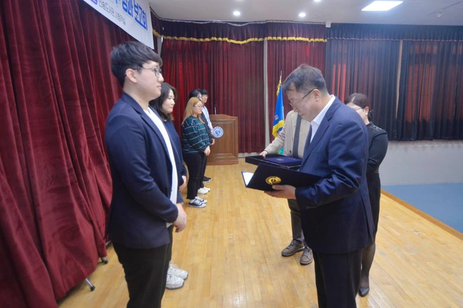 본문 시작 홈으로 SMIT 소식 SMIT 소개 SMIT 교육 SMIT 취업 SMIT 소식 SMIT 입학 홈페이지가이드 갤러리 공지사항 갤러리 경진대회 동아리 갤러리 페이스북 트위터 프린트 2019학년도 자기설계 해외배낭연수 성과보고회 수상 정보통신학부 6324 2019-11-12 지난 10월 31일(목) 민송도서관 1층 시청각실에서 2019년 자기설계 해외배낭연수 성과보고회가 개최되었다. 이 날은 2019년 자기설계 해외배낭연수 우수 연수 사례를 본교 재학생과 공유하고 2020년 프로그램 시행에 대한 소통의 장을 마련하고자 시행되었으며 많은 재학생들이 참석한 가운데 정보통신학부에서는 'CHARM팀'(엄0호, 강0성, 이0재)이 우수상을 수여받았다. 목록 이전2019학년도 일자리센터지원 IT엔지니어링대학 멘토링사업 다음 한국멀티미디어학회 춘계학술대회 우수논문상 수상 담당부서 : 스마트IT학부 담당자 : - 연락처 : 043-649-1275 최종수정일 : 2024-10-26 만족도조사 만족도 조사 이 페이지에서 제공하는 정보에 대하여 만족하시나요? 매우만족 만족 보통 불만족 매우불만족