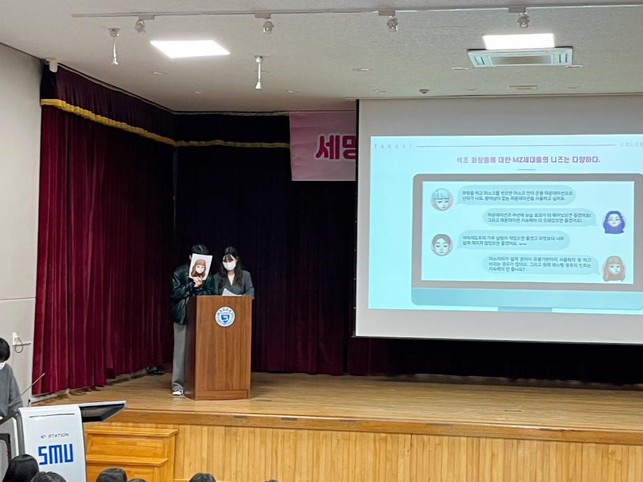 조색+충전형 립스틱 소개, MZ세대가 열광할 기초화장품 및 색조화장품 소개 등 다양한 주제를 바탕으로 학생들이 각자 제품을 기획하고 마케팅까지 해보며 발표하는 시간을 가졌답니다 :)