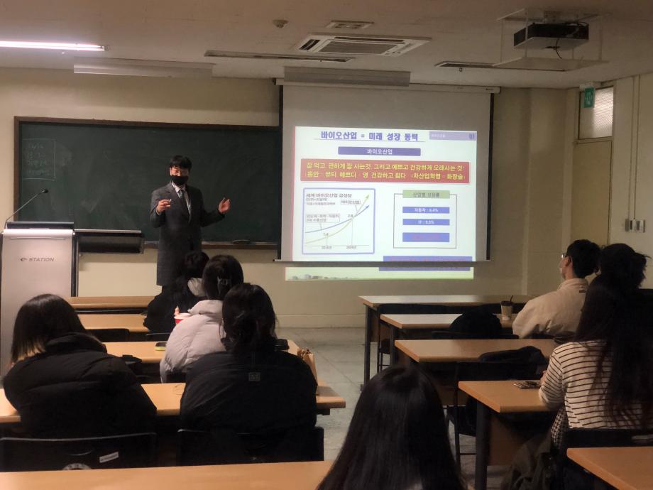 본문 시작 홈으로 커뮤니티 학과소개 학과과정 대학원 커뮤니티 연구동아리 홈페이지가이드 포토갤러리 학과공지 채용정보 학과일정 포토갤러리 유튜브 인스타그램 취업현황 학생회 조직도 졸업생 숏터뷰 포토갤러리 페이스북 트위터 프린트 [화장품산업실무체험] 김수진박사 학술특강 화장품뷰티학부 3694 2022-12-12 안녕하세요 화장품학과입니다! 우리학과 [화장품산업실무체험] 강의에서 학술특강을 진행하였는데요 :) '인트론바이오'에서 근무중이신 김수진 박사님께서 진행해 주셨습니다 ~ 바이오 시장에 대해 전반적으로 이해하는 시간을 가지고, 시장지향적인 마케팅적 사고로 전환하여 화장품분야를 다양한 관점에서 이해하는 시간을 가졌습니다 학생들에게 창의적으로 사고할수 있는 방법에 대해 강의해 주신 김수진 박사님께 감사의 말씀 전합니다 :) 목록 이전화장품학과 : 2022 캡스톤디자인 수상하다! 다음 2022년도 2학기 기말고사 시행 담당부서 : 바이오코스메틱학과 담당자 : - 연락처 : 043-649-1638 최종수정일 : 2024-10-26 만족도조사 만족도 조사 이 페이지에서 제공하는 정보에 대하여 만족하시나요? 매우만족 만족 보통 불만족 매우불만족