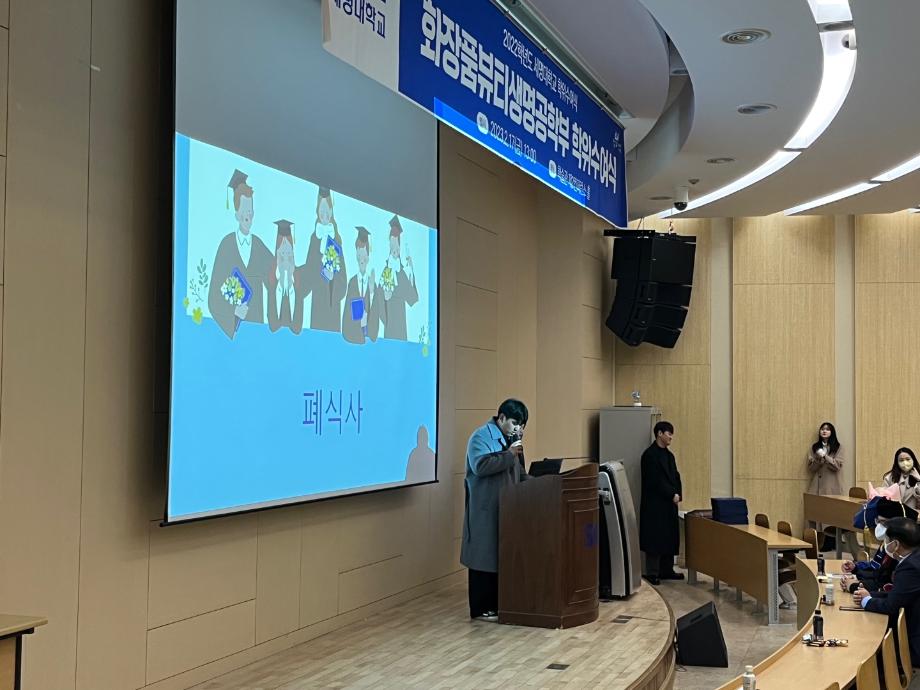 본문 시작 홈으로 커뮤니티 학과소개 학과과정 대학원 커뮤니티 연구동아리 홈페이지가이드 포토갤러리 학과공지 채용정보 학과일정 포토갤러리 유튜브 인스타그램 취업현황 학생회 조직도 졸업생 숏터뷰 포토갤러리 페이스북 트위터 프린트 화장품뷰티생명공학부 졸업하다! 화장품뷰티학부 3779 2023-02-21 안녕하세요 화장품뷰티생명공학부입니다! 2023년 2월 17일에 우리학과 4학년 재학생들의 졸업식이 시행되었습니다 :) 4년간 졸업을 위해 열심히 달려온 학생들에게 무한의 박수를 드립니다 ❤ 사회에 나가서도 우리학부의 졸업생이라는 자부심을 가지고 열심히 살아가길 바랍니다 ^&^ 다시 한 번 졸업을 진심으로 축하드립니다! 목록 이전(주) 페트라온 회사 방문후기 다음 2023 K-한방 정밀의료 국제포럼 안내 담당부서 : 바이오코스메틱학과 담당자 : - 연락처 : 043-649-1638 최종수정일 : 2024-10-26 만족도조사 만족도 조사 이 페이지에서 제공하는 정보에 대하여 만족하시나요? 매우만족 만족 보통 불만족 매우불만족