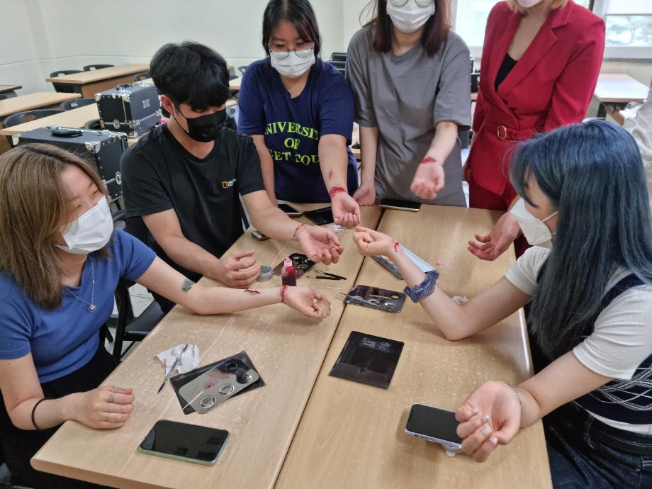 본문 시작 홈으로 커뮤니티 학과소개 학과과정 대학원 커뮤니티 연구동아리 홈페이지가이드 포토갤러리 학과공지 채용정보 학과일정 포토갤러리 유튜브 인스타그램 취업현황 학생회 조직도 졸업생 숏터뷰 포토갤러리 페이스북 트위터 프린트 [뷰티케어학] 메이크업 특강 진행 화장품뷰티학부 5073 2021-07-08 <메이크업 특강 1탄> 6월 22일 (화) 꾸안꾸 뷰티 커뮤니티(지도교수: 안채리 교수님) 학생들이 참여한 메이크업 특강이 진행되었습니다 좋아하는 연예인을 대상으로 일러스트레이션에 도전 ! 손목에 상처분장은 실제 같아 무서워 보여요 ⍨ 처음 배워본 특수분장 신기하기도 하고 재미있는 시간이었습니다 :) 목록 이전[F.P.L 동아리] 입욕제 만들기 다음 [아쿠아디테 동아리] 2021-1 하계방학 특별활동 담당부서 : 바이오코스메틱학과 담당자 : - 연락처 : 043-649-1638 최종수정일 : 2024-10-26 만족도조사 만족도 조사 이 페이지에서 제공하는 정보에 대하여 만족하시나요? 매우만족 만족 보통 불만족 매우불만족