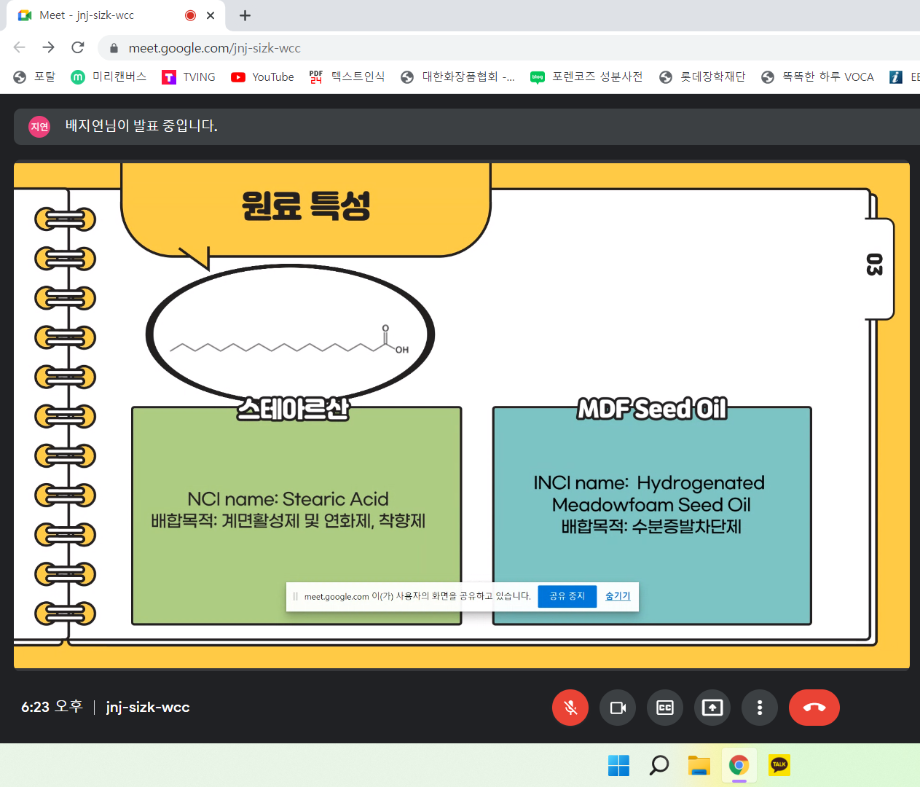 실험에 대한 계획과 결과를 발표하기도 하고 간단한 레포트도 작성하였습니다. 또한 립스틱과 클렌징 오일도 제조하면서 새로운 경험을 쌓을 수 있었습니다.