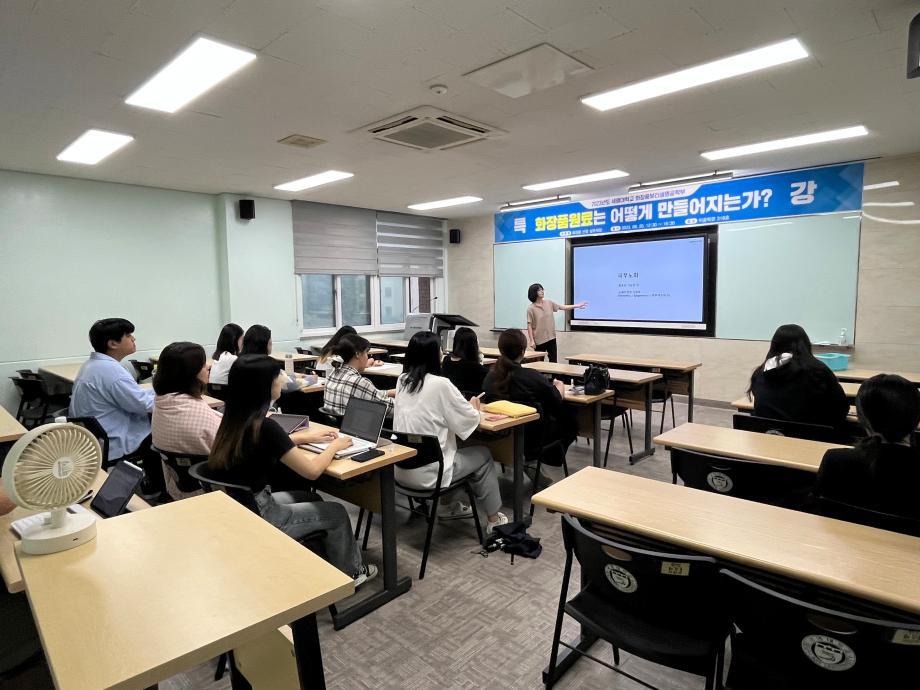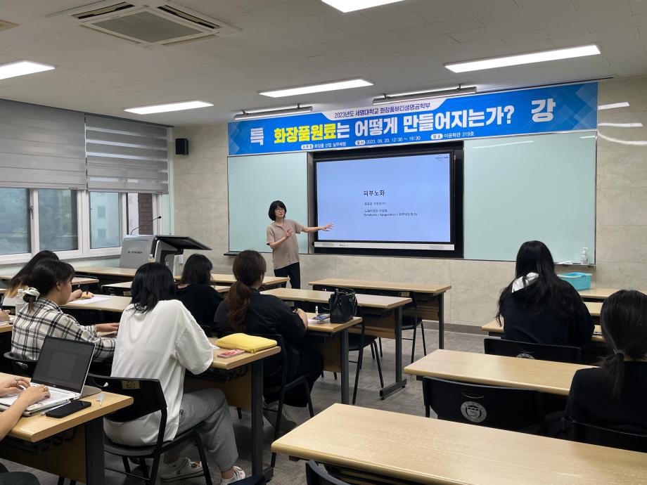 본문 시작 홈으로 커뮤니티 학과소개 학과과정 대학원 커뮤니티 연구동아리 홈페이지가이드 포토갤러리 학과공지 채용정보 학과일정 포토갤러리 유튜브 인스타그램 취업현황 학생회 조직도 졸업생 숏터뷰 포토갤러리 페이스북 트위터 프린트 2023학년도 제2회 화장품생명공학부 학술특강 화장품뷰티학부 3051 2023-09-22 2023학년도 09월 20일 제 2회 화장품산업실무체험 화장품생명공학부 학술특강을 진행하였습니다. 정은선 강사님께서 화장품 원료는 어떻게만들어지는가에 대한 강의를 해주셨습니다. 목록 이전2023학년도 제1회 화장품생명공학부 학술특강 다음 S-BOOT 전문가 초청 취업코칭 특강 담당부서 : 바이오코스메틱학과 담당자 : - 연락처 : 043-649-1638 최종수정일 : 2024-10-26 만족도조사 만족도 조사 이 페이지에서 제공하는 정보에 대하여 만족하시나요? 매우만족 만족 보통 불만족 매우불만족