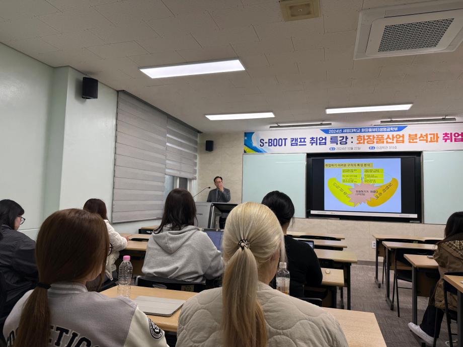본문 시작 홈으로 커뮤니티 학과소개 학과과정 대학원 커뮤니티 연구동아리 홈페이지가이드 포토갤러리 학과공지 채용정보 학과일정 포토갤러리 유튜브 인스타그램 취업현황 학생회 조직도 졸업생 숏터뷰 포토갤러리 페이스북 트위터 프린트 2024년도 제1회 S-BOOT 특강 바이오코스메틱학과 2804 2024-10-30 2024년 10월 22일 화요일 이공학관 319호에 “S-BOOT 캠프 취업 특강: 화장품산업 분석과 취업특강 ”을 메가코스 김영호 대표님께서 진행해 주셨습니다 ‼️ 화장품 산업에 대해 더 자세히 알게된 유익한 시간이었습니다 목록 이전2024 오송화장품뷰티산업엑스포 현장체험 다음 화장품실무체험 (주)지에프씨생명과학 회사소개 및 신제품개발 특강 담당부서 : 바이오코스메틱학과 담당자 : - 연락처 : 043-649-1638 최종수정일 : 2024-10-26 만족도조사 만족도 조사 이 페이지에서 제공하는 정보에 대하여 만족하시나요? 매우만족 만족 보통 불만족 매우불만족