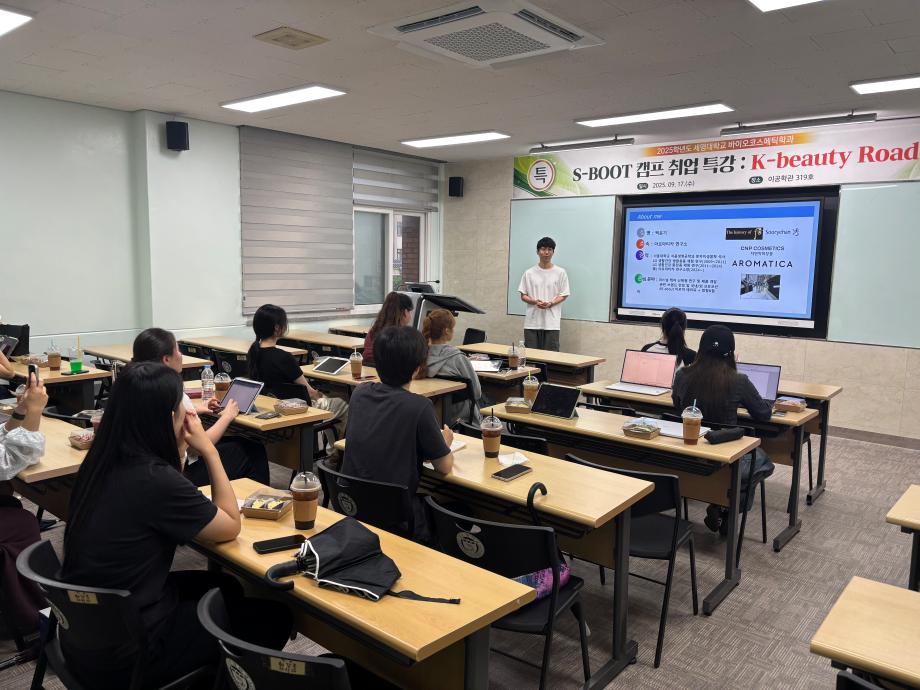 본문 시작 홈으로 커뮤니티 학과소개 학과과정 대학원 커뮤니티 연구동아리 홈페이지가이드 포토갤러리 학과공지 채용정보 학과일정 포토갤러리 유튜브 인스타그램 취업현황 학생회 조직도 졸업생 숏터뷰 포토갤러리 페이스북 트위터 프린트 2025학년도 1차 S-BOOT 특강_K-Beauty Road 바이오코스메틱학과 1190 2025-10-13 2025학년도 1차 S-BOOT 특강을 진행하였습니다. 목록 이전2025학년도 1차 화장품생명공학세미나 다음 2025학년도 2차 화장품생명공학세미나 담당부서 : 바이오코스메틱학과 담당자 : - 연락처 : 043-649-1638 최종수정일 : 2024-10-26 만족도조사 만족도 조사 이 페이지에서 제공하는 정보에 대하여 만족하시나요? 매우만족 만족 보통 불만족 매우불만족