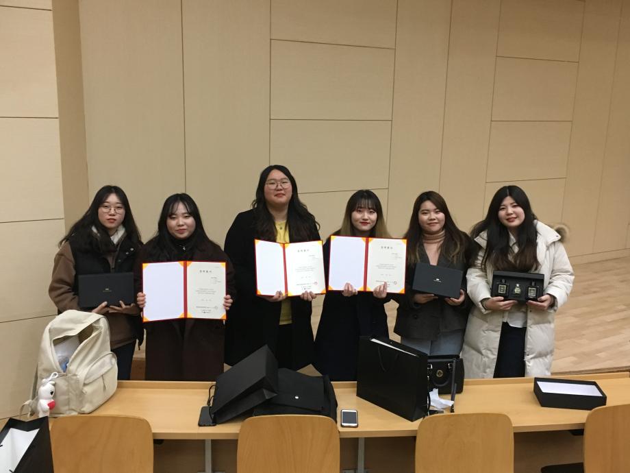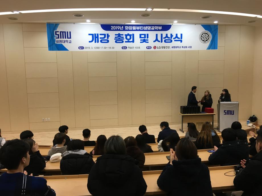 본문 시작 홈으로 커뮤니티 학과소개 학과과정 대학원 커뮤니티 연구동아리 홈페이지가이드 포토갤러리 학과공지 채용정보 학과일정 포토갤러리 유튜브 인스타그램 취업현황 학생회 조직도 졸업생 숏터뷰 포토갤러리 페이스북 트위터 프린트 2019-1 시상식 및 개강총회 화장품뷰티생명공학부 7608 2019-03-13 3월 12일, 학술제 겸 개강총회 행사를 진행하였습니다. 2018학년도 LG생활건강 공모전에 당선된 학생들과 성적우수자들에 상장을 전달하였으며, 2018년 겨울방학동안 기획실에서 주관하는 특성화사업에 참가하고 피부미용사 자격증을 취득한 학생들에게 상품을 증정하였습니다. 학술제가 끝난 후에는 신입생들은 동기들과 더 친해지고 선배들과도 돈독해질 수 있는 식사시간을 가졌습니다. 목록 이전2019 꿈설계학기 다음 2019년 단체봉사활동 시행 담당부서 : 바이오코스메틱학과 담당자 : - 연락처 : 043-649-1638 최종수정일 : 2024-10-26 만족도조사 만족도 조사 이 페이지에서 제공하는 정보에 대하여 만족하시나요? 매우만족 만족 보통 불만족 매우불만족