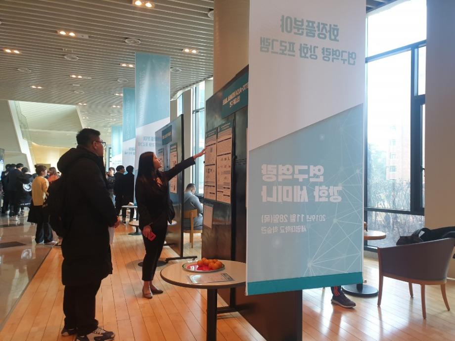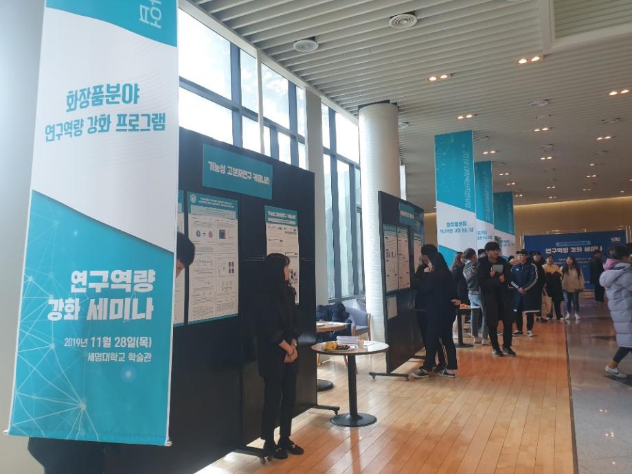 본문 시작 홈으로 커뮤니티 학과소개 학과과정 대학원 커뮤니티 연구동아리 홈페이지가이드 포토갤러리 학과공지 채용정보 학과일정 포토갤러리 유튜브 인스타그램 취업현황 학생회 조직도 졸업생 숏터뷰 포토갤러리 페이스북 트위터 프린트 2019학년도 연구역량 강화 세미나 화장품뷰티생명공학부 8081 2019-11-28 2019년 11월 28일, 학술관에서 연구역량 강화 세미나가 열렸습니다. 지역연계 5팀, 한방바이오 화장품분야 9팀으로 총 14팀의 연구 커뮤니티가 참여하였고, 학술관 102호에서는 대학혁지원사업과 관련하여 시행중인 [학생참여형 지역연계 연구 프로그램]과 [힌방바이오, 화장품분야 연구역량 강화사업]의 사업성과를 발표하는 시간이 있었습니다. 학술관 로비에서는 사업 성과에 대한 포스터세션을 운영하였습니다. 목록 이전“아쿠아디테”2019 대한화장품학회 추계학술대회 참가 다음 제1회 화장품뷰티생명공학부 전공체험 워크샵 담당부서 : 바이오코스메틱학과 담당자 : - 연락처 : 043-649-1638 최종수정일 : 2024-10-26 만족도조사 만족도 조사 이 페이지에서 제공하는 정보에 대하여 만족하시나요? 매우만족 만족 보통 불만족 매우불만족