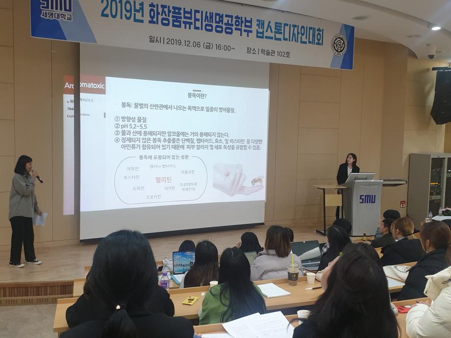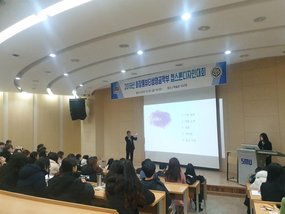 본문 시작 홈으로 커뮤니티 학과소개 학과과정 대학원 커뮤니티 연구동아리 홈페이지가이드 포토갤러리 학과공지 채용정보 학과일정 포토갤러리 유튜브 인스타그램 취업현황 학생회 조직도 졸업생 숏터뷰 포토갤러리 페이스북 트위터 프린트 2019년 화장품뷰티생명공학부 캡스톤디자인대회 화장품뷰티생명공학부 8625 2019-12-06 16시부터 학술관 102호에서 화장품뷰티생명공학부의 캡스톤디자인대회가 열렸습니다, 학생들은 조별로 질 좋은 화장품, 디자인 등을 생각해내어 그 분야에 대해 연구하였고, 그 결과를 발표하며 서로의 아이디어와 지식을 공유하였습니다. 목록 이전수산중학교 학생들과 함께하는 전공체험 워크샵 다음 「제1회 사임당화장품 아이디어 공모전」화장품뷰티생명공학부 학생 비전상 입상 담당부서 : 바이오코스메틱학과 담당자 : - 연락처 : 043-649-1638 최종수정일 : 2024-10-26 만족도조사 만족도 조사 이 페이지에서 제공하는 정보에 대하여 만족하시나요? 매우만족 만족 보통 불만족 매우불만족