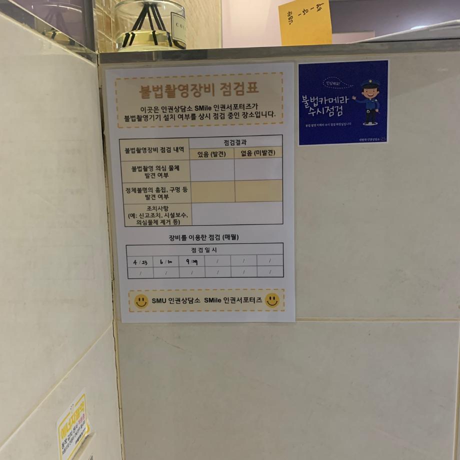 본문 시작 2021-2 불법카메라 점검표 부착 CHARM케어상담센터 3428 2021-10-27 - 목록 이전2021-2 불법카메라점검표 부착관련 준비 다음 11월 불법카메라 정기점검 진행(캡스) 담당부서 : CHARM케어상담센터 담당자 : - 연락처 : 043-649-1789 최종수정일 : 2024-10-26 만족도조사 만족도 조사 이 페이지에서 제공하는 정보에 대하여 만족하시나요? 매우만족 만족 보통 불만족 매우불만족