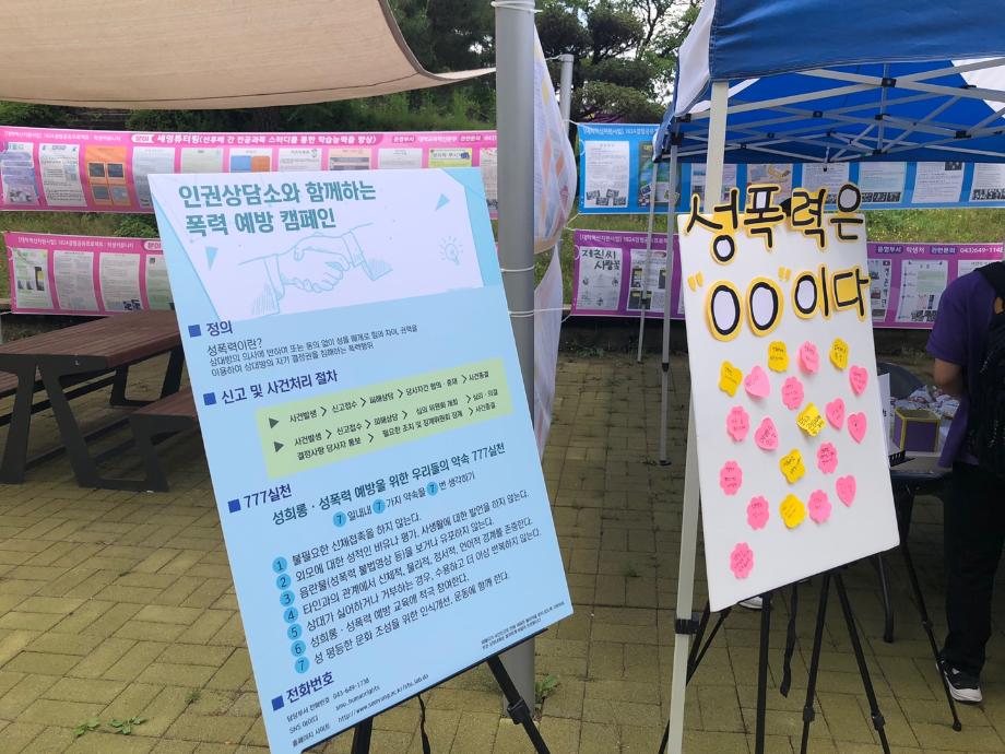 본문 시작 교내 폭력예방 캠페인_인권서포터즈와함께 CHARM케어상담센터 3838 2021-05-31 -5.25(화) 목록 이전폭력예방 캠페인_가정폭력상담소와함께 다음 인권서포터즈와 함께 캠페인 진행 준비 담당부서 : CHARM케어상담센터 담당자 : - 연락처 : 043-649-1789 최종수정일 : 2024-10-26 만족도조사 만족도 조사 이 페이지에서 제공하는 정보에 대하여 만족하시나요? 매우만족 만족 보통 불만족 매우불만족