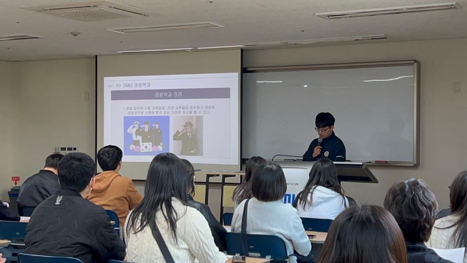 본문 시작 홈으로 커뮤니티 학과소개 교수소개 학과과정 커뮤니티 홈페이지가이드 포토갤러리 학부공지 학과일정 포토갤러리 학생회 동아리 포토갤러리 페이스북 트위터 프린트 2023 경찰학과 개강총회 경찰학과 3464 2023-03-10 3월 10일 금요일 16시, 학술관 409호에서 개강총회를 실시하였습니다. 학우분들의 즐거운 학교생활을 위해서 불편한 사항을 더 편하게 말할 수 있고, 힘든 학교 생활에서 조금 더 친밀해지고자 하는 의미로 개강총회를 실시하게 되었습니다. 개강총회에서 학과소개, 학과 동아리 소개 및 MT, 청룡체전, 성년의 날 등의 학과 행사 소개 등을 진행하였습니다. 목록 이전2022 경찰학과 MT 다음 2023 ROAD 전동킥보드 단속 캠페인 만족도조사 만족도 조사 이 페이지에서 제공하는 정보에 대하여 만족하시나요? 매우만족 만족 보통 불만족 매우불만족
