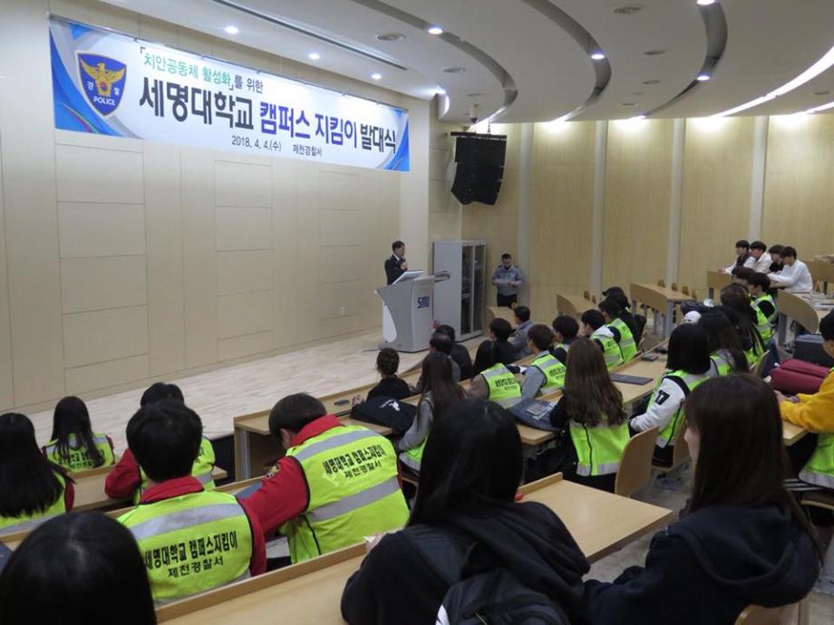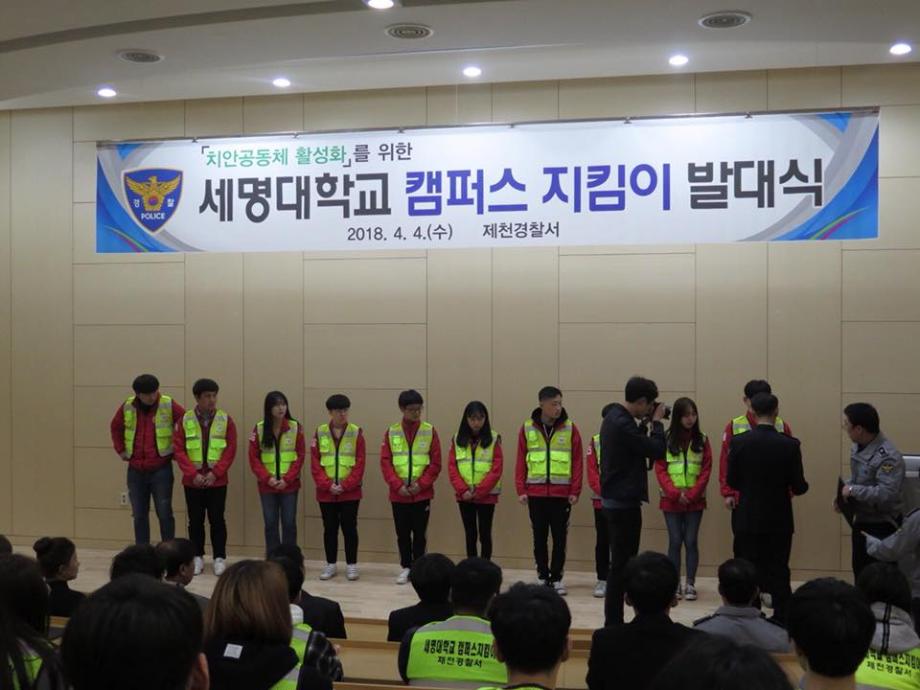 본문 시작 홈으로 커뮤니티 학과소개 교수소개 학과과정 커뮤니티 홈페이지가이드 포토갤러리 학부공지 학과일정 포토갤러리 학생회 동아리 포토갤러리 페이스북 트위터 프린트 2018 제천경찰서와 함께하는 캠퍼스 지킴이 발대식 경찰행정학과 6496 2018-04-04 캠퍼스 지킴이 발대식이 있었습니다. 제천경찰서와 세명대 경찰행정학과가 함께하여 제천의 취약한 일대를 순찰하게 되었습니다. 앞으로의 지킴이 활동이 기대가 됩니다. 목록 이전2018 꿈 설계학기 OT 다음 2018 경찰행정학과 MT 만족도조사 만족도 조사 이 페이지에서 제공하는 정보에 대하여 만족하시나요? 매우만족 만족 보통 불만족 매우불만족