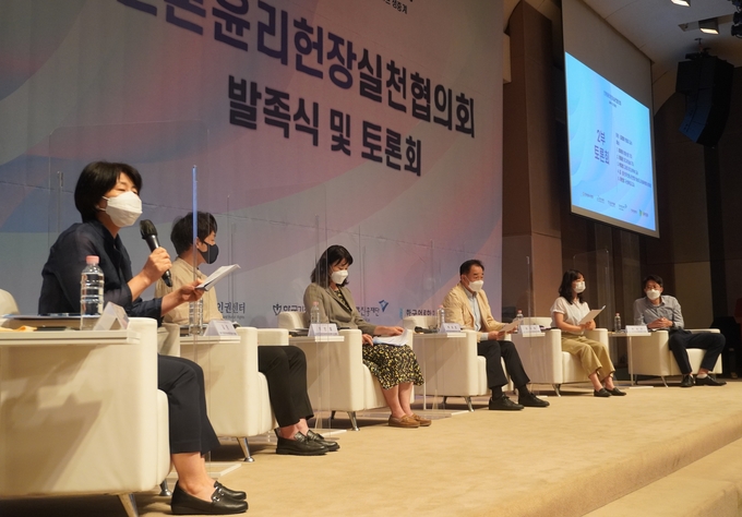 지난 16일 '언론윤리헌장실천협의회' 발족식에 이어 열린 토론회에선 언론윤리헌장을 대하는 현장 기자의 인식, 언론 윤리 원칙 개선과 실천을 위한 제언이 나왔다. (▶관련기사: 언론단체‧학계 '윤리헌장' 확산 손 모은다)