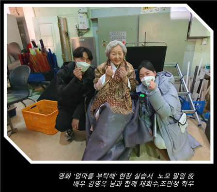 세명대 공연영상학과 16학번 조민정, 채희수 학생이 국내외 영화제에서 주목을 받은 박경목 감독의 장편영화 데뷔작 ‘엄마를 부탁해’(제작 ㈜파란오이) 촬영 현장에서 동계 현장실습을 완수했다.