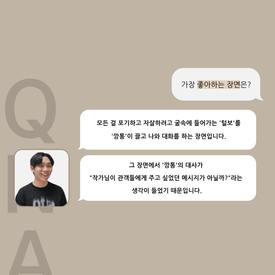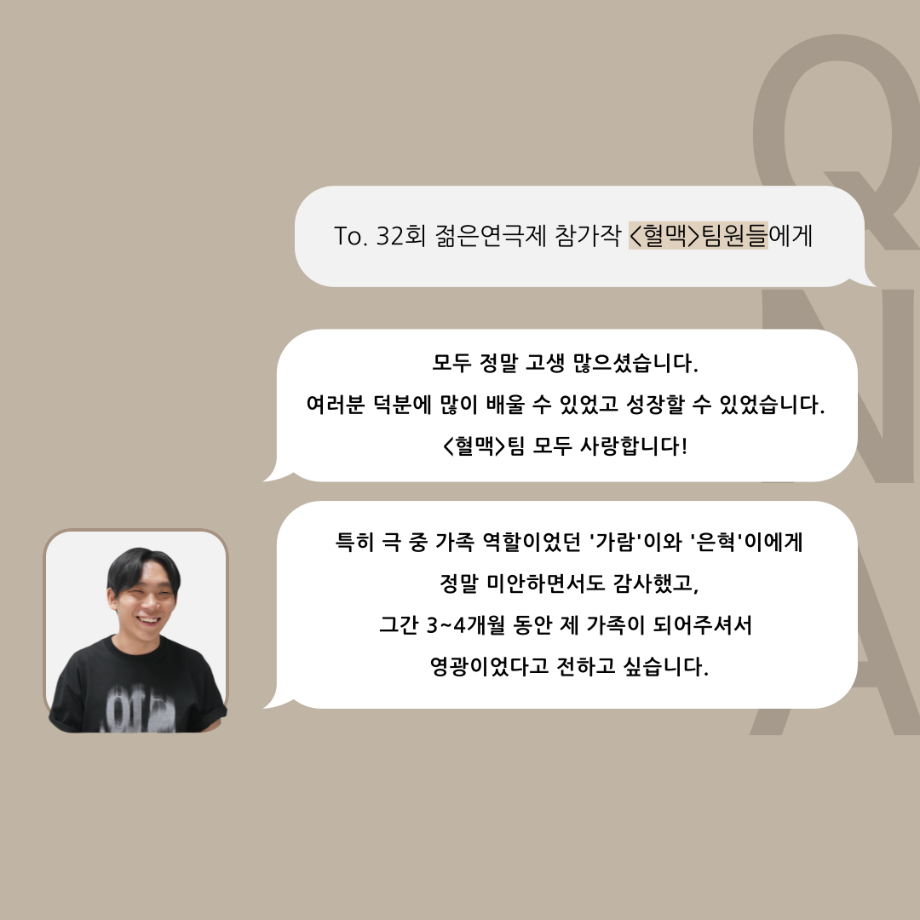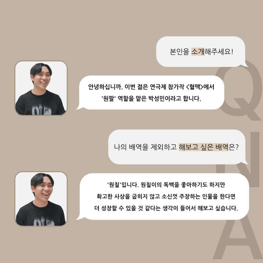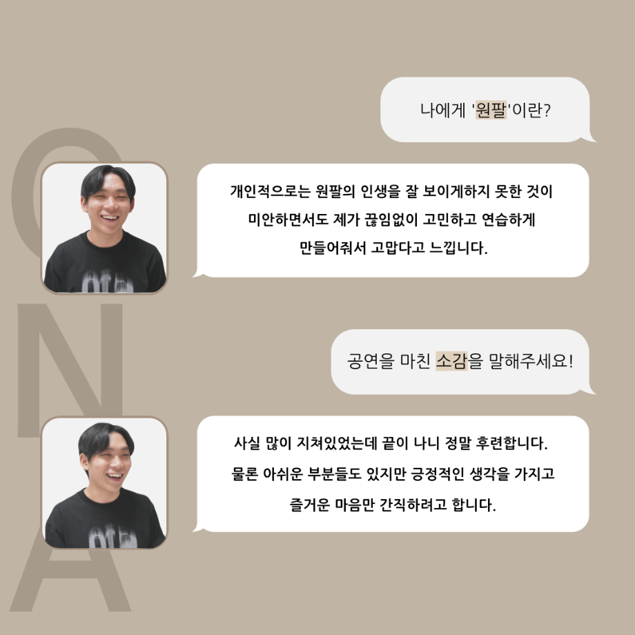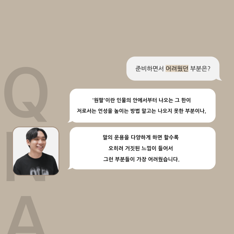 본문 시작 홈으로 커뮤니티 학과소개 입학정보 교수소개 학과과정 커뮤니티 공연예매 안내 홈페이지가이드 포토갤러리 공지사항 포토갤러리 작품DB 동아리 학사일정 학생회 포토갤러리 페이스북 트위터 프린트 ‘품’위있는 인‘터뷰’ - 24년도 젊은연극제 원팔役 <박성민> 연기예술학과 3390 2024-08-09 안녕하십니까. 24년도 학회 ‘품’ 입니다. 학회 ‘품’의 열 한 번째 인터뷰로 세명대학교 연기예술학과 24학년도 젊은연극제 참가작 <혈맥> 원팔 역인 박성민 학우와 인터뷰 하는 시간을 가졌습니다. 가장 좋아하는 장면, 자신의 배역을 제외하고 해보고 싶은 배역 그리고 준비하면서 어려웠던 부분과 공연을 마친 소감 등에 대해 인터뷰 하는 시간을 가졌습니다. 앞으로 있을 인터뷰 컨텐츠인 ‘품터뷰’ 많은 사랑 부탁드립니다. 목록 이전'품'위있는 인'터뷰' - 24년도 젊은연극제 학생 연출 <오승아> 다음 제6회 세명진로 Festival 대면 특강 안내 담당부서 : 연기예술학과 담당자 : - 연락처 : 043-649-1733 최종수정일 : 2024-10-26 만족도조사 만족도 조사 이 페이지에서 제공하는 정보에 대하여 만족하시나요? 매우만족 만족 보통 불만족 매우불만족