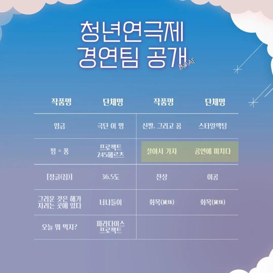 본문 시작 홈으로 커뮤니티 학과소개 입학정보 교수소개 학과과정 커뮤니티 공연예매 안내 홈페이지가이드 포토갤러리 공지사항 포토갤러리 작품DB 동아리 학사일정 학생회 포토갤러리 페이스북 트위터 프린트 🌊2022 제 19회 부산국제연극제 청년연극제 참가작 본선 진출 🫂[살아서 가자]👣 연기예술학과 2981 2022-06-13 🌊2022 제 19회 부산국제연극제 청년연극제 참가작 본선 진출 🫂[살아서 가자]👣 🌺[살아서 가자]는 6.25전쟁을 배경으로하여, 원치않는 전쟁에 참가한 남한과 북한의 어린 청춘들이 소통의 부재로 비극적인 전투를 하게 되는 내용을 다룬 창작극입니다. 👥 이번 청년연극제 참가작인 [살아서 가자]는 신입생들과 2학년 학생들이 액션신과 군무 등 함께 호흡을 맞춰 즐겁게 연습했던 작품입니다!! 목록 이전🗣제 81회 세명대학교 연기예술학과 정기공연 기초연기1 발표🗣 다음 제 82회 세명대학교 연기예술학과 정기공연 중급연기 | 발표 <팔레트>🎨 담당부서 : 연기예술학과 담당자 : - 연락처 : 043-649-1733 최종수정일 : 2024-10-26 만족도조사 만족도 조사 이 페이지에서 제공하는 정보에 대하여 만족하시나요? 매우만족 만족 보통 불만족 매우불만족