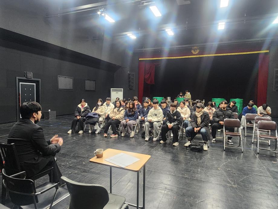 본문 시작 홈으로 커뮤니티 학과소개 입학정보 교수소개 학과과정 커뮤니티 공연예매 안내 홈페이지가이드 포토갤러리 공지사항 포토갤러리 작품DB 동아리 학사일정 학생회 포토갤러리 페이스북 트위터 프린트 2023 연기예술학과 재학생을 위한 특강 연기예술학과 2974 2023-11-30 지난 11월 14일 세명대학교 연기예술학과 재학생 대상으로 특강을 진행하였습니다! 졸업생인 13학번 박근형 연출, 박차준(박영광) 배우를 만나뵐 수 있는 기회였습니다. 2학년 배우전공 학생들의 프로필 촬영과 1,2학년 학생들과의 Q&A시간들을 통해 다양한 궁금증을 풀 수 있는 시간이였습니다! 목록 이전제100회 세명대학교 연기예술학과 정기공연 2학년 <중급연기 관찰발표회> 포스터 다음 사이와의 인터뷰 - 23년도 극장동아리 조명 파트 부원 ‘백건호‘ 담당부서 : 연기예술학과 담당자 : - 연락처 : 043-649-1733 최종수정일 : 2024-10-26 만족도조사 만족도 조사 이 페이지에서 제공하는 정보에 대하여 만족하시나요? 매우만족 만족 보통 불만족 매우불만족