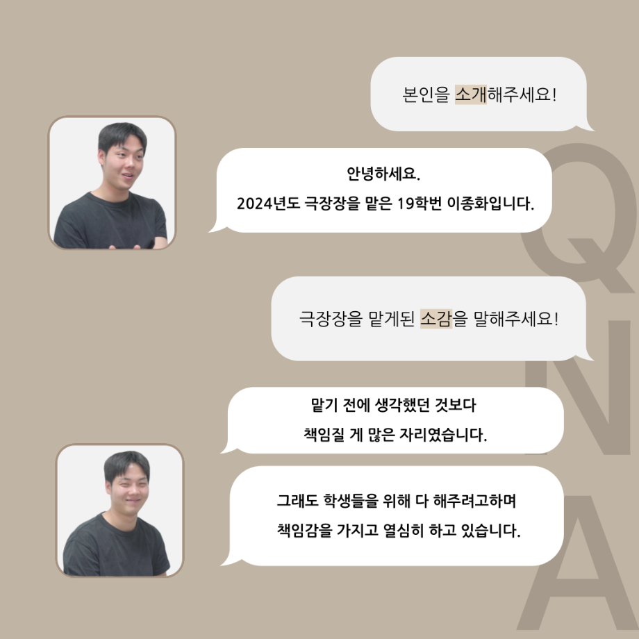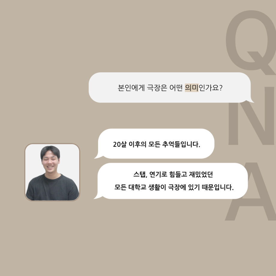 본문 시작 홈으로 커뮤니티 학과소개 입학정보 교수소개 학과과정 커뮤니티 공연예매 안내 홈페이지가이드 포토갤러리 공지사항 포토갤러리 작품DB 동아리 학사일정 학생회 포토갤러리 페이스북 트위터 프린트 '품'위있는 인'터뷰' - 24년도 극장장 <이종화> 연기예술학과 3355 2024-07-12 안녕하십니다 24년도 학회 ‘품‘ 입니다. 학회 ‘품’의 세 번째 인터뷰로 세명대학교 연기예술학과 24학년도 극장장인 이종화 학우와 인터뷰 하는 시간을 가졌습니다. 극장장을 맡게된 소감과 극장은 어떤 의미가 있는지, 파트장과 학과생에게 전하고 싶은 말 등을 질문하는 시간을 가졌습니다. 앞으로 있을 인터뷰 컨텐츠인 ‘품터뷰’ 많은 사랑 부탁드립니다. 목록 이전'품'위있는 인'터뷰' - 24년도 부학회장 <최가람> 다음 제5회 대한민국 신직업·미래직업 아이디어 공모전 담당부서 : 연기예술학과 담당자 : - 연락처 : 043-649-1733 최종수정일 : 2024-10-26 만족도조사 만족도 조사 이 페이지에서 제공하는 정보에 대하여 만족하시나요? 매우만족 만족 보통 불만족 매우불만족