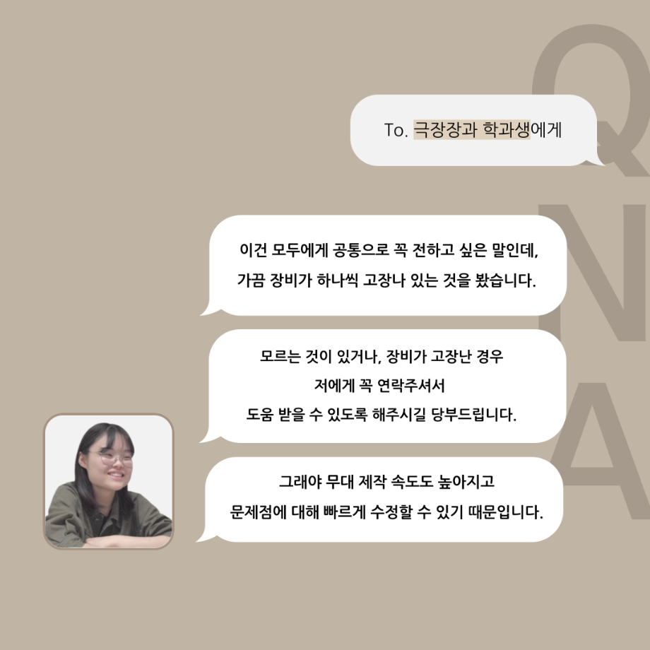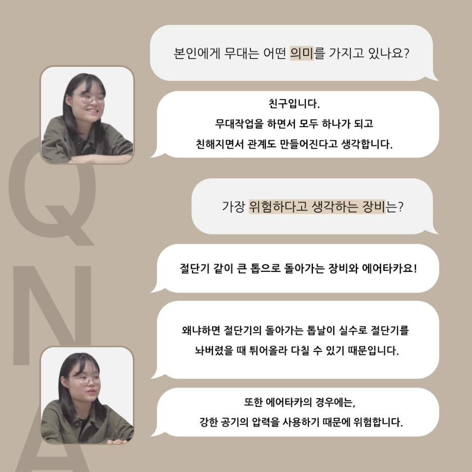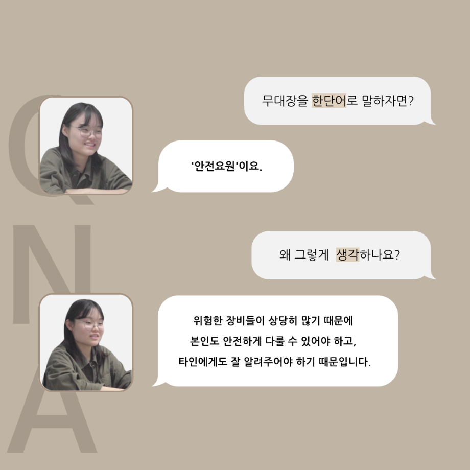 본문 시작 홈으로 커뮤니티 학과소개 입학정보 교수소개 학과과정 커뮤니티 공연예매 안내 홈페이지가이드 포토갤러리 공지사항 포토갤러리 작품DB 동아리 학사일정 학생회 포토갤러리 페이스북 트위터 프린트 '품'위있는 인'터뷰' - 24년도 무대장 <장보배> 연기예술학과 3304 2024-07-16 안녕하십니까. 24년도 학회 ‘품‘ 입니다. 학회 ‘품’의 네 번째 인터뷰로 세명대학교 연기예술학과 24학년도 무대장인 장보배 학우와 인터뷰 하는 시간을 가졌습니다. 무대장을 맡게된 소감과 무대는 어떤 의미가 있는지, 위험한 장비는 무엇이며 극장장과 학과생에게 전하고 싶은 말 등을 질문하는 시간을 가졌습니다. 앞으로 있을 인터뷰 컨텐츠인 ‘품터뷰’ 많은 사랑 부탁드립니다. 목록 이전제5회 대한민국 신직업·미래직업 아이디어 공모전 다음 2024학년도 2학기 표준현장실습 학생신청 안내 담당부서 : 연기예술학과 담당자 : - 연락처 : 043-649-1733 최종수정일 : 2024-10-26 만족도조사 만족도 조사 이 페이지에서 제공하는 정보에 대하여 만족하시나요? 매우만족 만족 보통 불만족 매우불만족