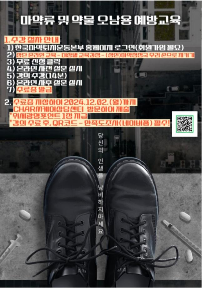 본문 시작 홈으로 커뮤니티 학과소개 입학정보 교수소개 학과과정 커뮤니티 공연예매 안내 홈페이지가이드 포토갤러리 공지사항 포토갤러리 작품DB 동아리 학사일정 학생회 포토갤러리 페이스북 트위터 프린트 2024학년도 2학기 마약중독 예방교육 실시 안내 연기예술학과 2838 2024-09-03 . 목록 이전2024년 세명대학교 연기예술학과 개강총회 다음 세명대학교 연기예술학과 수시모집 담당부서 : 연기예술학과 담당자 : - 연락처 : 043-649-1733 최종수정일 : 2024-10-26 만족도조사 만족도 조사 이 페이지에서 제공하는 정보에 대하여 만족하시나요? 매우만족 만족 보통 불만족 매우불만족