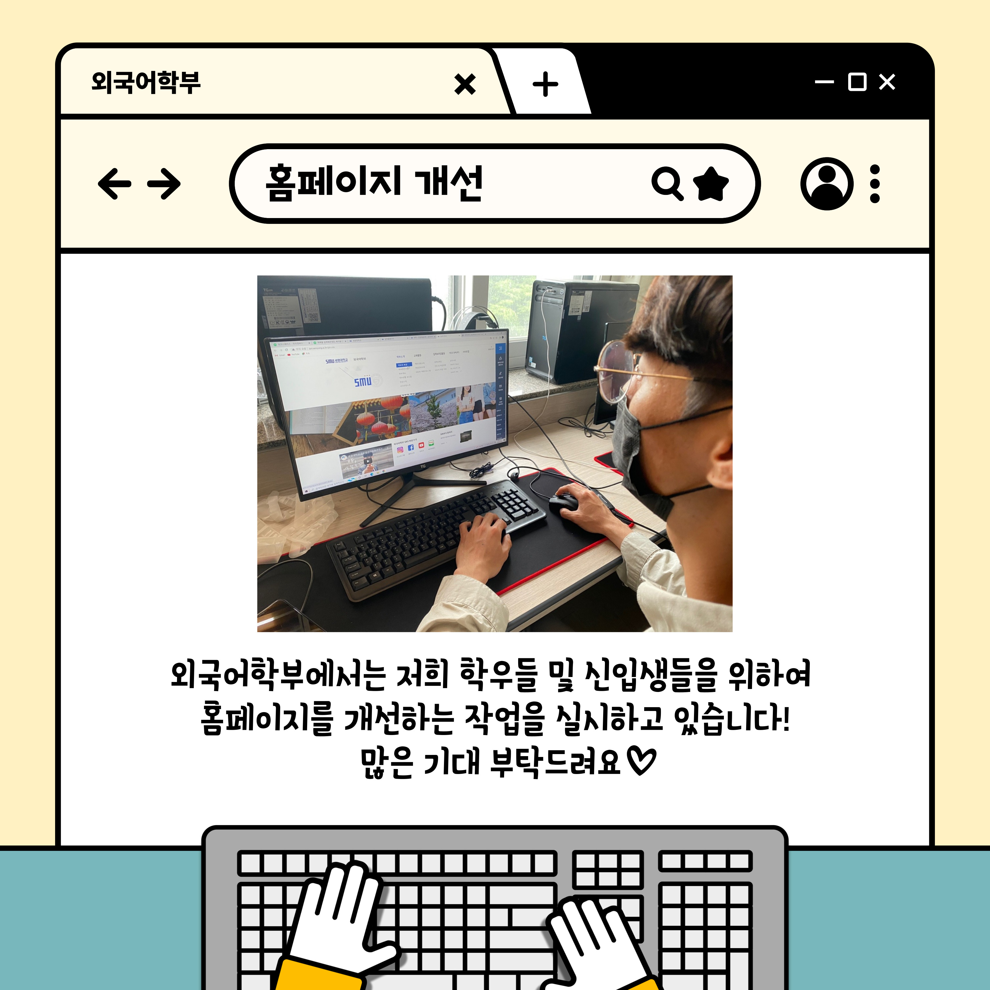 본문 시작 홈으로 YES! SMUFS 학부소개 교육과정 교육활동 입학&취업활동 YES! SMUFS 홈페이지가이드 SMUFS News 공지사항 SMUFS News SMUFS SNS SMUFS News 페이스북 트위터 프린트 2023년도를 맞이하여 새 단장 준비중인 외국어학부 조회 : 2848 등록일 : 2022-06-08 KakaoTalk_20220608_170405169.jpg ( 630 kb) ?atchFileId=FILE_000000000114774&fileSn=0 KakaoTalk_20220608_170405169.jpg 2023년도를 맞이하여 홈페이지 개선에 들어가고 있는 외국어학부의 모습입니다. 목록 이전글로벌언어문화콘텐츠학부 2022 스승의날 다음 2023년도 외국어학부 홍보 동영상 제작