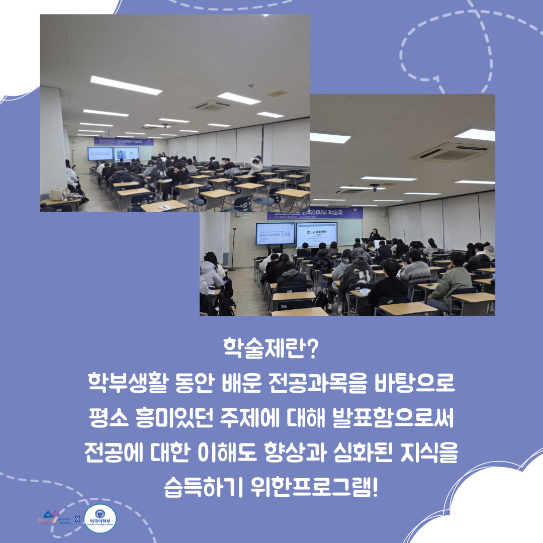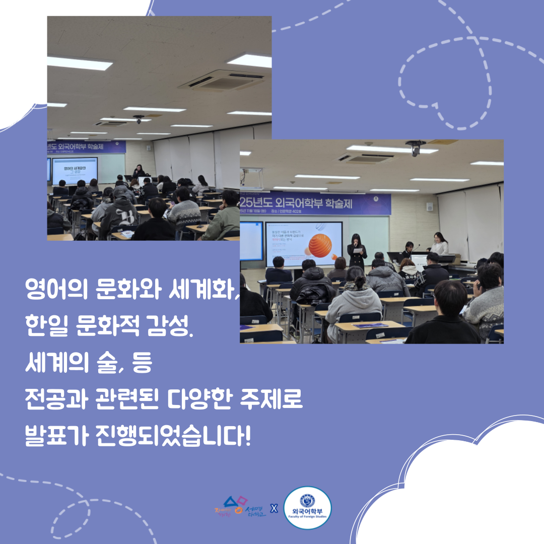 본문 시작 홈으로 YES! SMUFS 학부소개 교육과정 교육활동 입학&취업활동 YES! SMUFS 홈페이지가이드 SMUFS News 공지사항 SMUFS News SMUFS SNS SMUFS News 페이스북 트위터 프린트 2025 학술제 조회 : 300 등록일 : 2025-12-26 001.png ( 142 kb) ?atchFileId=FILE_000000000234168&fileSn=0 001.png 목록 이전2025 2학기 농촌봉사활동 다음 2025 필리핀 어학연수