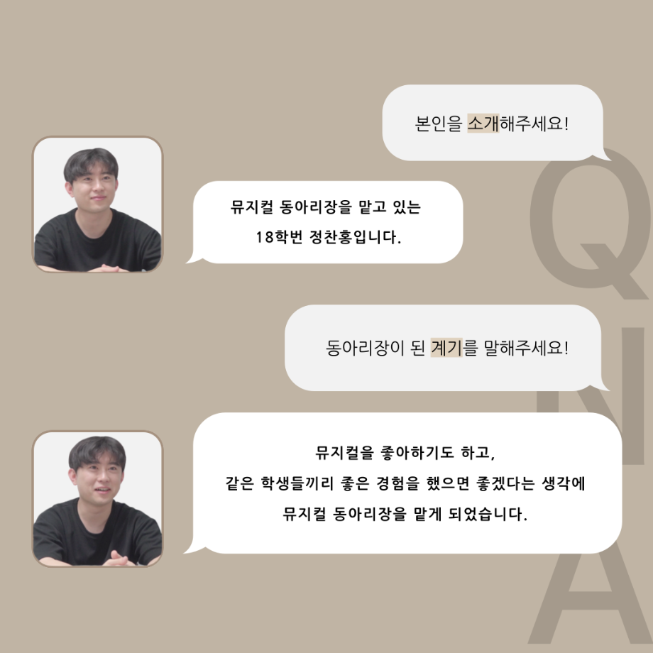 본문 시작 홈으로 커뮤니티 학과소개 입학정보 교수소개 학과과정 커뮤니티 공연예매 안내 홈페이지가이드 동아리 공지사항 포토갤러리 작품DB 동아리 학사일정 학생회 뮤지컬 동아리 무용 동아리 뮤지컬 동아리 극장 스탭 동아리 배우 훈련 동아리 뮤지컬 동아리 페이스북 트위터 프린트 '품'위있는 인’터뷰‘ - 24년도 뮤지컬동아리장 <정찬홍> 연기예술학과 2908 2024-07-31 안녕하십니까. 24년도 학회 ‘품‘ 입니다. 학회 ‘품’의 여덟 번째 인터뷰로 세명대학교 연기예술학과 24학년도 뮤지컬동아리장인 정찬홍 학우와 인터뷰 하는 시간을 가졌습니다. 뮤지컬 동아리장이 된 계기와 동아리에서는 어떤 활동을 하고있는지, 앞으로의 계획은 무엇으며 동아리 부원들에게 전하고 싶은 말 등을 질문하는 시간을 가졌습니다. 앞으로 있을 인터뷰 컨텐츠인 ‘품터뷰’ 많은 사랑 부탁드립니다. 목록 이전🎼 뮤지컬 동아리 “기적의 도서관” 갈라쇼 다음 2024학년도 2학기 뮤지컬 동아리 '음악;音樂' 활동 만족도조사 만족도 조사 이 페이지에서 제공하는 정보에 대하여 만족하시나요? 매우만족 만족 보통 불만족 매우불만족
