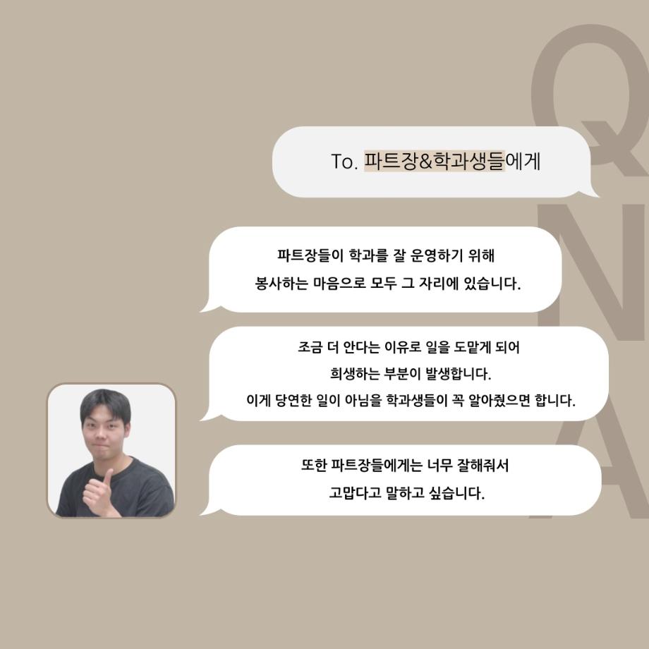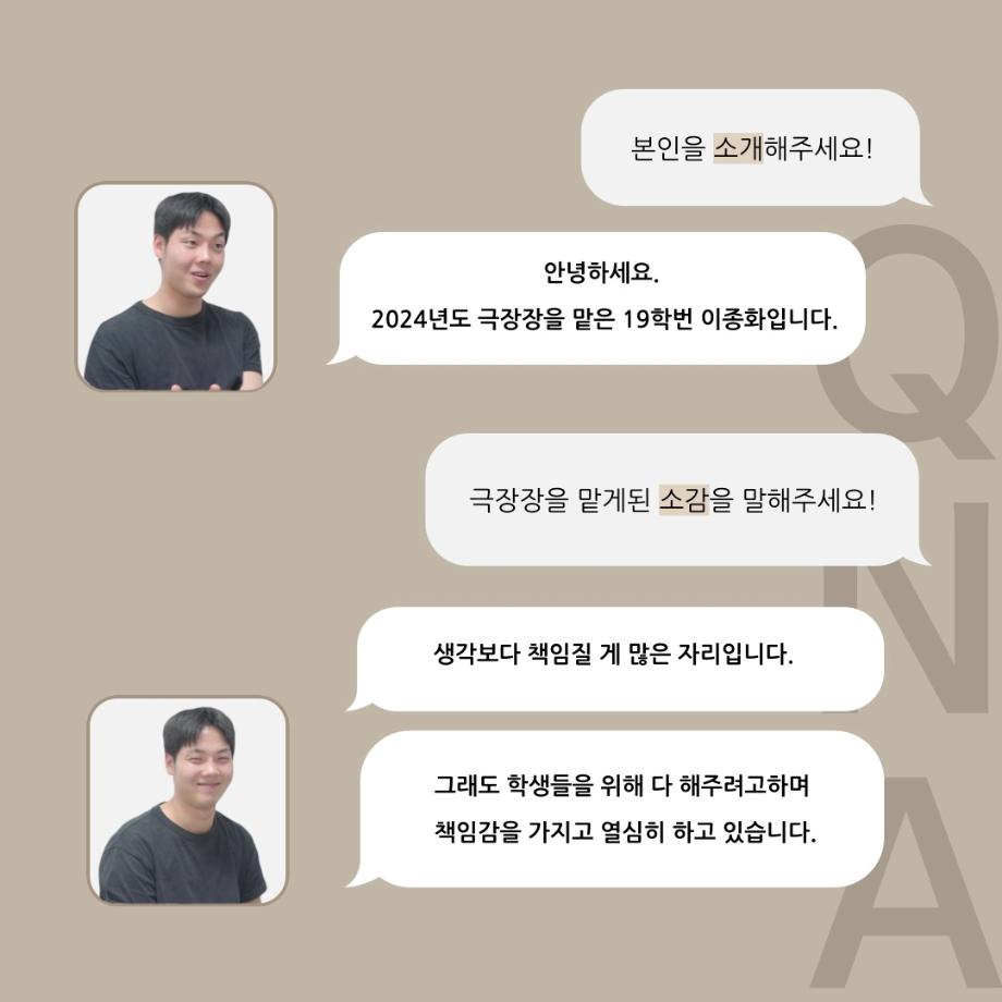 본문 시작 홈으로 커뮤니티 학과소개 입학정보 교수소개 학과과정 커뮤니티 공연예매 안내 홈페이지가이드 동아리 공지사항 포토갤러리 작품DB 동아리 학사일정 학생회 극장 스탭 동아리 무용 동아리 뮤지컬 동아리 극장 스탭 동아리 배우 훈련 동아리 극장 스탭 동아리 페이스북 트위터 프린트 ’품‘위있는 인’터뷰‘ - 24년도 극장장 <이종화> 연기예술학과 2515 2024-07-12 안녕하십니다. 24년도 학회 ‘품‘ 입니다. 학회 ‘품’의 세 번째 인터뷰로 세명대학교 연기예술학과 24학년도 극장장인 이종화 학우와 인터뷰 하는 시간을 가졌습니다. 극장장을 맡게된 소감과 극장은 어떤 의미가 있는지, 파트장과 학과생에게 전하고 싶은 말 등을 질문하는 시간을 가졌습니다. 앞으로 있을 인터뷰 컨텐츠인 ‘품터뷰’ 많은 사랑 부탁드립니다. 목록 이전세명대학교 연기예술학과 극장동아리 ‘짜스트’ - 무대, 조명 다음 ’품‘위있는 인’터뷰‘ - 24년도 무대장 <장보배> 만족도조사 만족도 조사 이 페이지에서 제공하는 정보에 대하여 만족하시나요? 매우만족 만족 보통 불만족 매우불만족