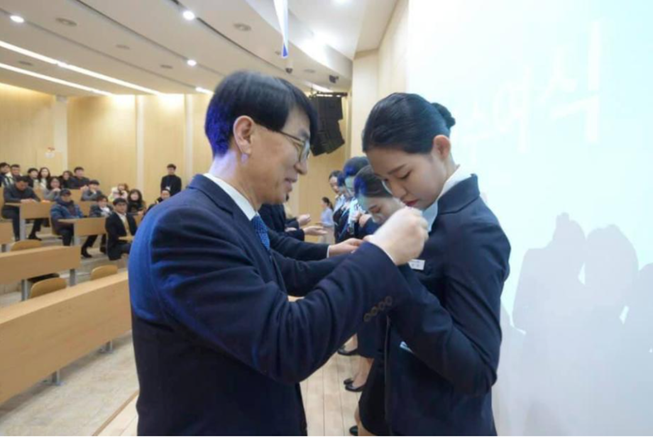 윙수여식에는 항공서비스학과 학부모님들과 총장님, 교수님들께서 신입생들에게 윙 배지를 달아주며 대학생활 동안 꿈을 위해 정진할 것을 격려해주셨습니다.